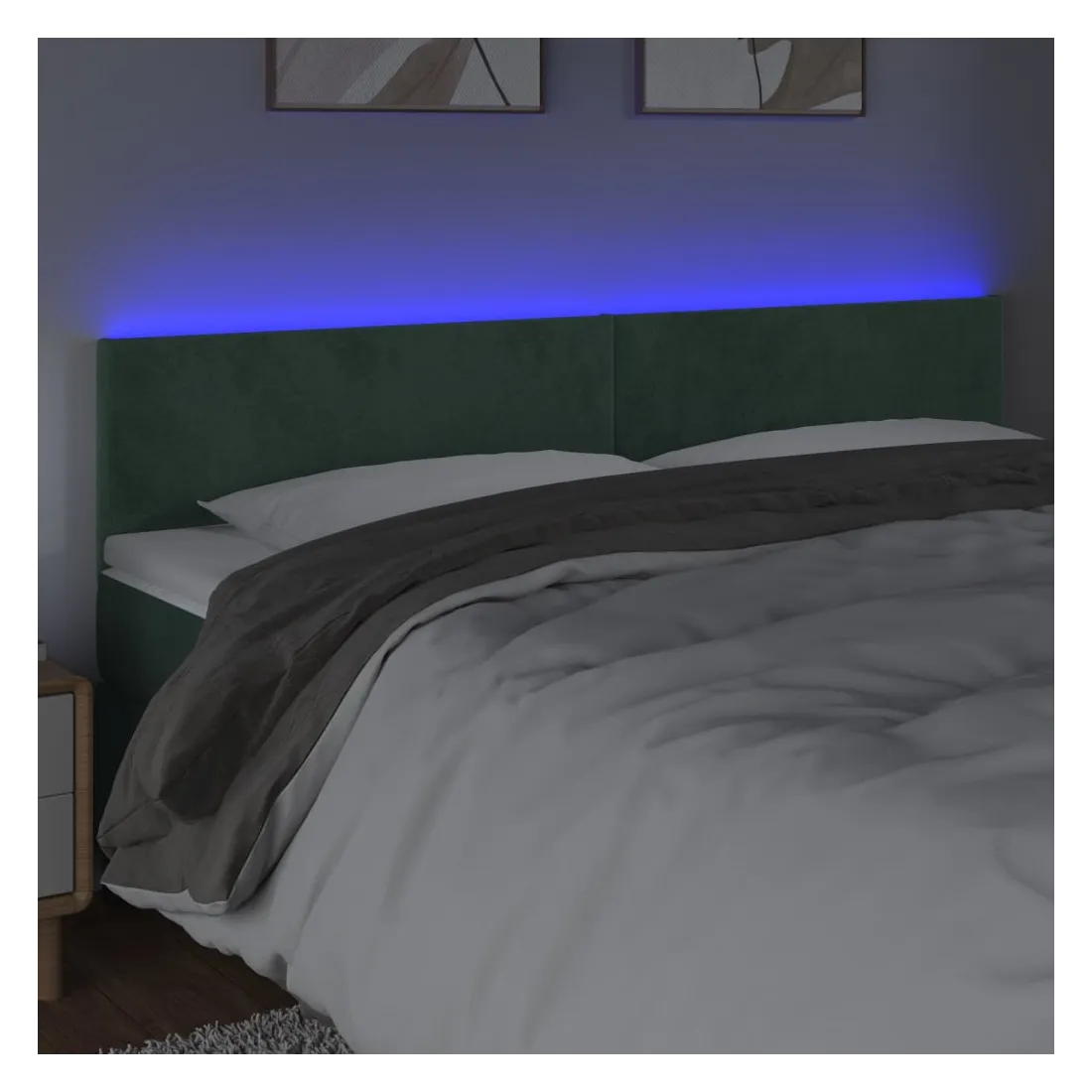 Cette tête de lit à LED classique, au design élégant, donne à votre cadre de lit une touche de modernité étonnante et convient parfaitement à toute chambre à coucher. Velours doux : le velours est un tissu doux et luxueux qui se reconnaît à son tas dense de fibres uniformément coupées qui ont une touche lisse. Le tissu en velours présente un toucher doux distinctif, ce qui le rend confortable au toucher.LED colorée : apportez de l'éclairage dans l'obscurité avec des lumières LED colorées !Hauteur réglable : la tête de lit est réglable en hauteur selon vos préférences.Excellent soutien : la tête de lit vous offre un excellent soutien du dos lorsque vous êtes assis dans votre lit pour lire ou regarder la télévision.Bande à LED découpable : cette bande à LED flexible peut être ajustée en longueur. Le symbole des ciseaux indique où la bande peut être coupée en toute sécurité sans l'endommager. Remarque :Seule la partie avec un symbole de ciseaux peut être coupée et seule la partie avec l'USB continuera à fonctionner comme avant.Chaque produit est livré avec un manuel de montage dans la boîte pour un montage facile.Ce produit est doté d'un connecteur USB, mais la source d'alimentation certifiée de USB 5V n'est pas incluse.