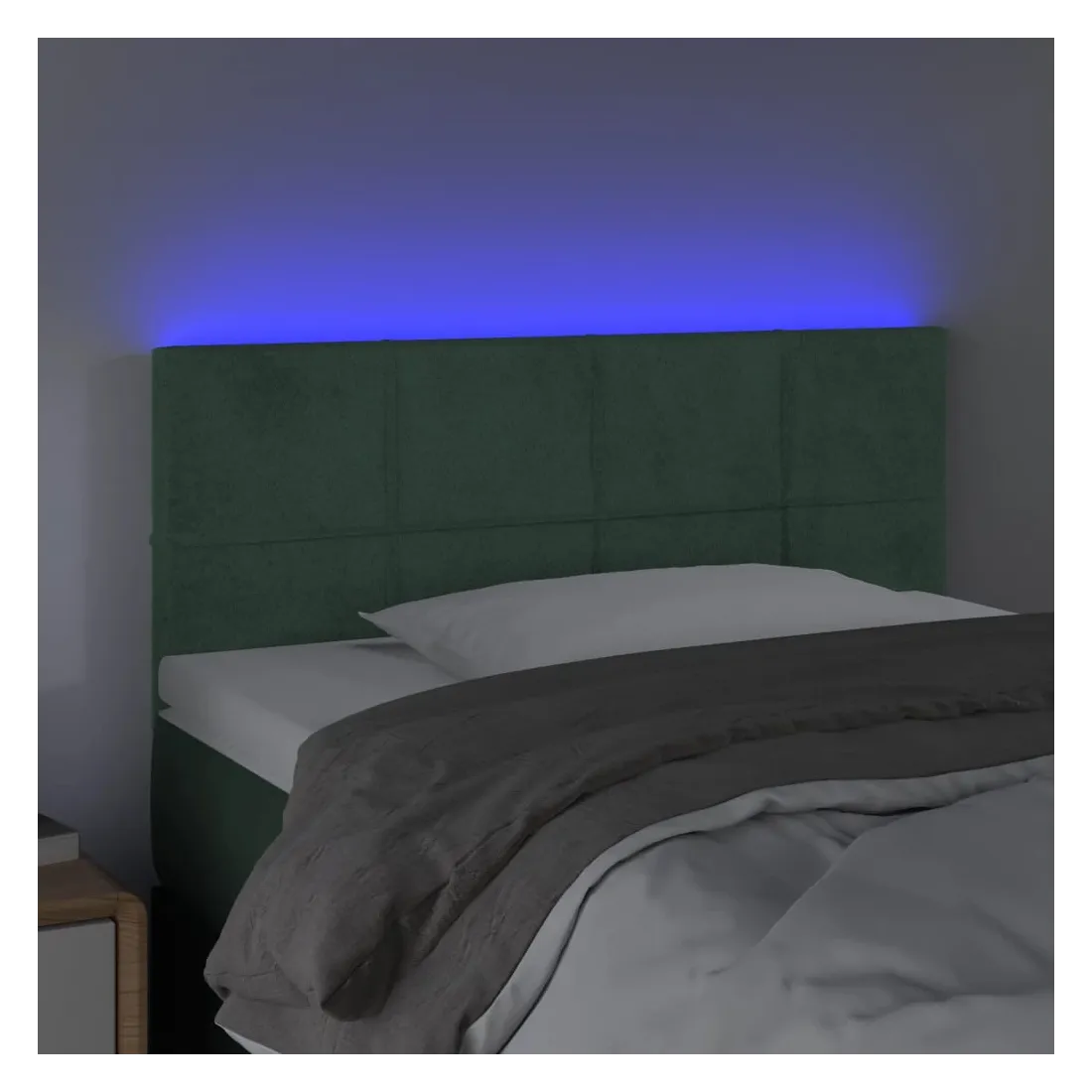 Cette tête de lit à LED classique, au design élégant, donne à votre cadre de lit une touche de modernité étonnante et convient parfaitement à toute chambre à coucher. Velours doux : le velours est un tissu doux et luxueux qui se reconnaît à son tas dense de fibres uniformément coupées qui ont une touche lisse. Le tissu en velours présente un toucher doux distinctif, ce qui le rend confortable au toucher.LED colorée : apportez de l'éclairage dans l'obscurité avec des lumières LED colorées !Hauteur réglable : la tête de lit est réglable en hauteur selon vos préférences.Excellent soutien : la tête de lit vous offre un excellent soutien du dos lorsque vous êtes assis dans votre lit pour lire ou regarder la télévision.Bande à LED découpable : cette bande à LED flexible peut être ajustée en longueur. Le symbole des ciseaux indique où la bande peut être coupée en toute sécurité sans l'endommager. Remarque :Seule la partie avec un symbole de ciseaux peut être coupée et seule la partie avec l'USB continuera à fonctionner comme avant.Chaque produit est livré avec un manuel de montage dans la boîte pour un montage facile.Ce produit est doté d'un connecteur USB, mais la source d'alimentation certifiée de USB 5V n'est pas incluse.