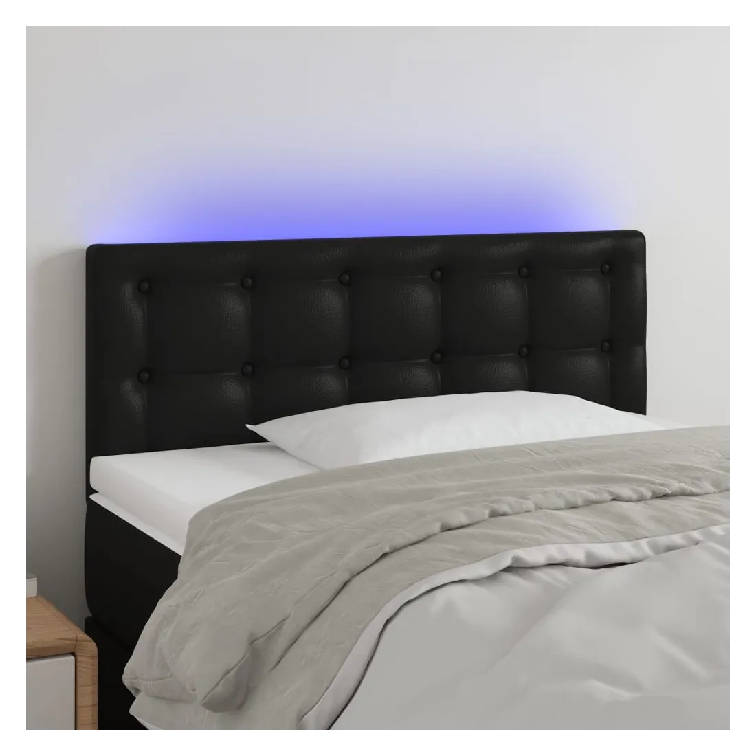 Cette tête de lit à LED classique, au design élégant, donne à votre cadre de lit une touche de modernité étonnante et convient parfaitement à toute chambre à coucher. Similicuir durable : le similicuir de qualité supérieure est un matériau très durable. Il est résistant aux taches, ce qui le rend facile à nettoyer avec un chiffon humide. La surface lisse donne également un aspect luxueux et la beauté du cuir véritable.LED colorée : apportez de l'éclairage dans l'obscurité avec des lumières LED colorées !Hauteur réglable : la tête de lit est réglable en hauteur selon vos préférences.Excellent soutien : la tête de lit vous offre un excellent soutien du dos lorsque vous êtes assis dans votre lit pour lire ou regarder la télévision.Bande à LED découpable : cette bande à LED flexible peut être ajustée en longueur. Le symbole des ciseaux indique où la bande peut être coupée en toute sécurité sans l'endommager. Remarque :Seule la partie avec un symbole de ciseaux peut être coupée et seule la partie avec l'USB continuera à fonctionner comme avant.Chaque produit est livré avec un manuel de montage dans la boîte pour un montage facile.Ce produit est doté d'un connecteur USB, mais la source d'alimentation certifiée de USB 5V n'est pas incluse.