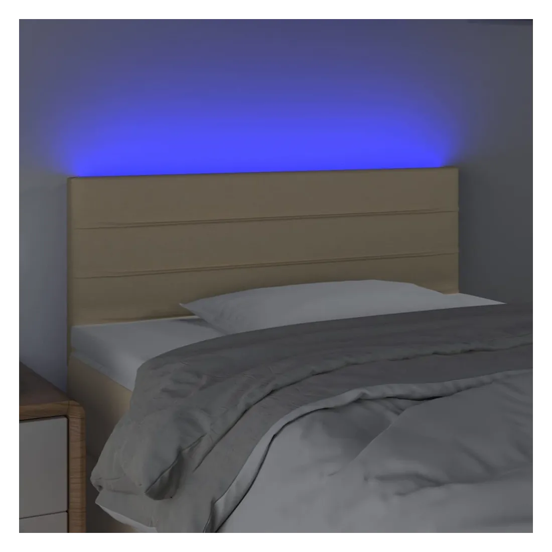 Cette tête de lit à LED classique, au design élégant, donne à votre cadre de lit une touche de modernité étonnante et convient parfaitement à toute chambre à coucher. Tissu durable : le tissu présente un aspect simple et épuré, et il est respirant et durable.LED colorée : apportez de l'éclairage dans l'obscurité avec des lumières LED colorées !Hauteur réglable : la tête de lit est réglable en hauteur selon vos préférences.Excellent soutien : la tête de lit vous offre un excellent soutien du dos lorsque vous êtes assis dans votre lit pour lire ou regarder la télévision.Bande à LED découpable : cette bande à LED flexible peut être ajustée en longueur. Le symbole des ciseaux indique où la bande peut être coupée en toute sécurité sans l'endommager. Remarque :Seule la partie avec un symbole de ciseaux peut être coupée et seule la partie avec l'USB continuera à fonctionner comme avant.Chaque produit est livré avec un manuel de montage dans la boîte pour un montage facile.Ce produit est doté d'un connecteur USB, mais la source d'alimentation certifiée de USB 5V n'est pas incluse.
