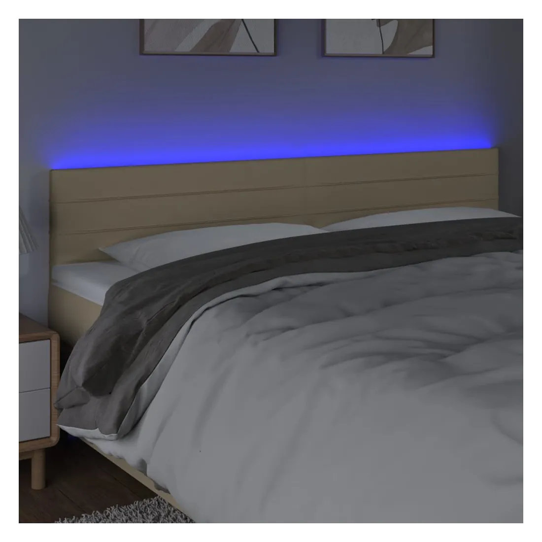 Cette tête de lit à LED classique, au design élégant, donne à votre cadre de lit une touche de modernité étonnante et convient parfaitement à toute chambre à coucher. Tissu durable : le tissu présente un aspect simple et épuré, et il est respirant et durable. LED colorée : apportez de l'éclairage dans l'obscurité avec des lumières LED colorées ! Hauteur réglable : la tête de lit est réglable en hauteur selon vos préférences. Excellent soutien : la tête de lit vous offre un excellent soutien du dos lorsque vous êtes assis dans votre lit pour lire ou regarder la télévision. Bande à LED découpable : cette bande à LED flexible peut être ajustée en longueur. Le symbole des ciseaux indique où la bande peut être coupée en toute sécurité sans l'endommager. Remarque : Seule la partie avec un sy