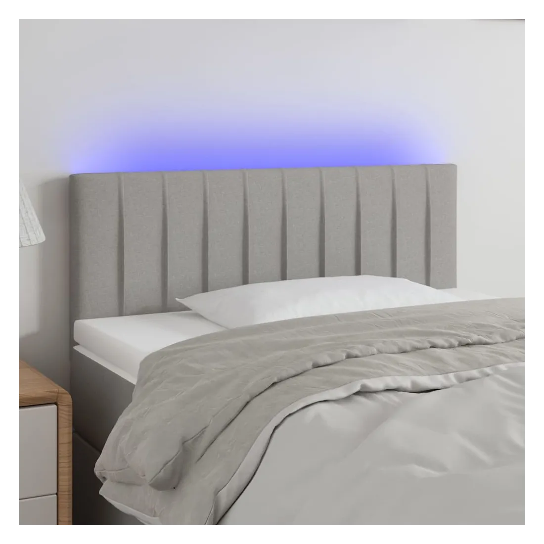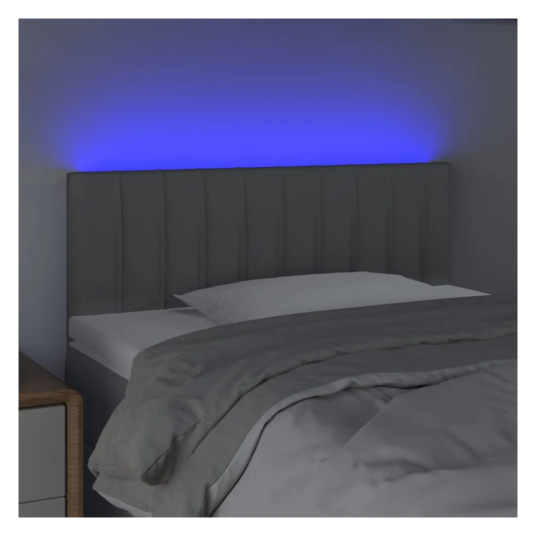 Cette tête de lit à LED classique, au design élégant, donne à votre cadre de lit une touche de modernité étonnante et convient parfaitement à toute chambre à coucher. Tissu durable : le tissu présente un aspect simple et épuré, et il est respirant et durable. LED colorée : apportez de l'éclairage dans l'obscurité avec des lumières LED colorées ! Hauteur réglable : la tête de lit est réglable en hauteur selon vos préférences. Excellent soutien : la tête de lit vous offre un excellent soutien du dos lorsque vous êtes assis dans votre lit pour lire ou regarder la télévision. Bande à LED découpable : cette bande à LED flexible peut être ajustée en longueur. Le symbole des ciseaux indique où la bande peut être coupée en toute sécurité sans l'endommager. Remarque : Seule la partie avec un sy