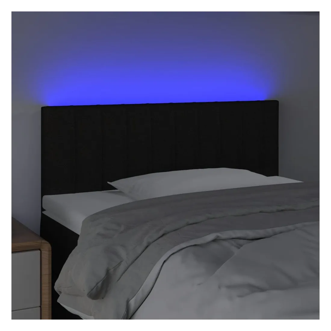 Cette tête de lit à LED classique, au design élégant, donne à votre cadre de lit une touche de modernité étonnante et convient parfaitement à toute chambre à coucher. Tissu durable : le tissu présente un aspect simple et épuré, et il est respirant et durable. LED colorée : apportez de l'éclairage dans l'obscurité avec des lumières LED colorées ! Hauteur réglable : la tête de lit est réglable en hauteur selon vos préférences. Excellent soutien : la tête de lit vous offre un excellent soutien du dos lorsque vous êtes assis dans votre lit pour lire ou regarder la télévision. Bande à LED découpable : cette bande à LED flexible peut être ajustée en longueur. Le symbole des ciseaux indique où la bande peut être coupée en toute sécurité sans l'endommager. Remarque : Seule la partie avec un sy