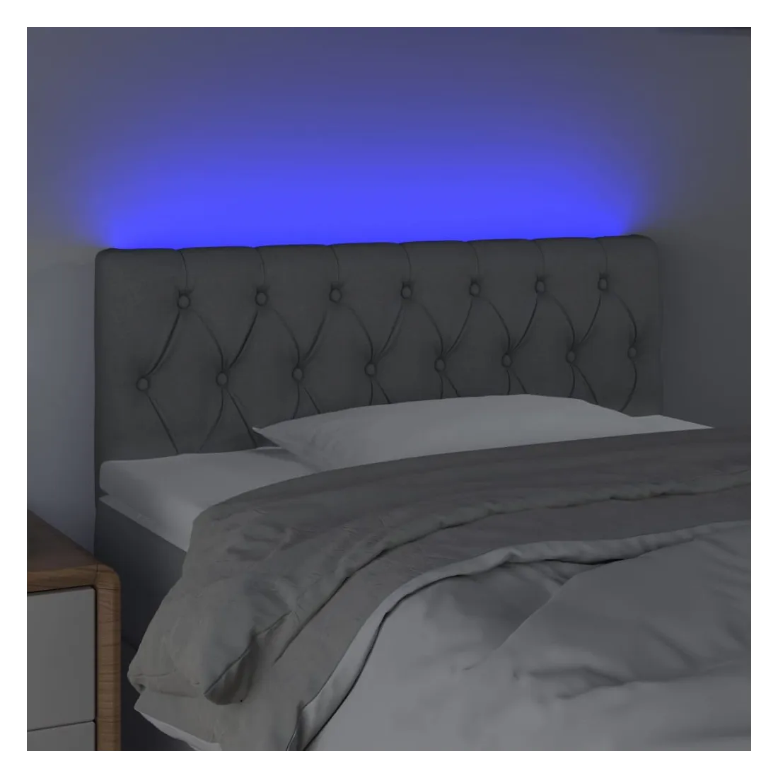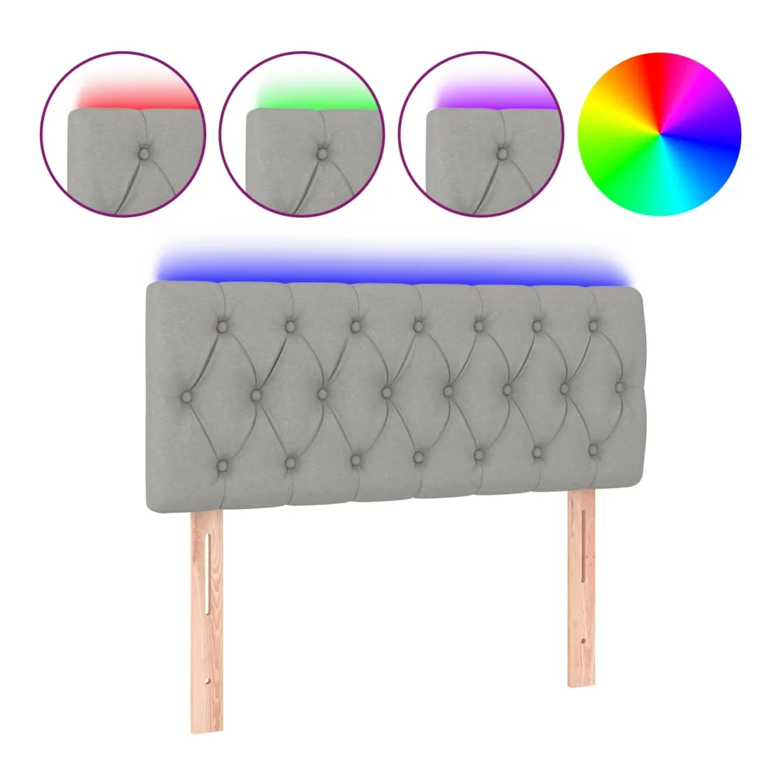 Cette tête de lit à LED classique, au design élégant, donne à votre cadre de lit une touche de modernité étonnante et convient parfaitement à toute chambre à coucher. Tissu durable : le tissu présente un aspect simple et épuré, et il est respirant et durable. LED colorée : apportez de l'éclairage dans l'obscurité avec des lumières LED colorées ! Hauteur réglable : la tête de lit est réglable en hauteur selon vos préférences. Excellent soutien : la tête de lit vous offre un excellent soutien du dos lorsque vous êtes assis dans votre lit pour lire ou regarder la télévision. Bande à LED découpable : cette bande à LED flexible peut être ajustée en longueur. Le symbole des ciseaux indique où la bande peut être coupée en toute sécurité sans l'endommager. Remarque : Seule la partie avec un sy