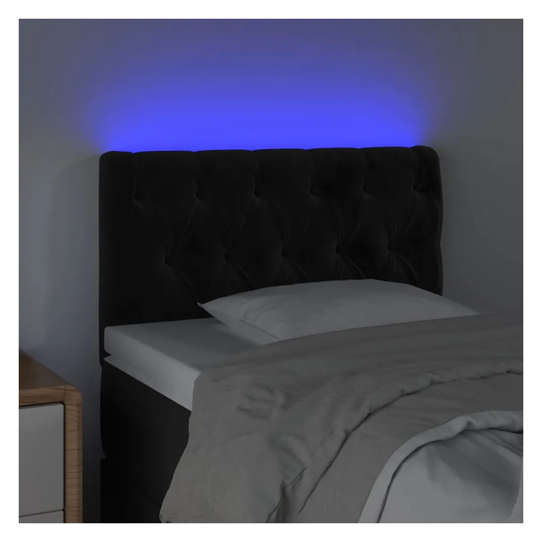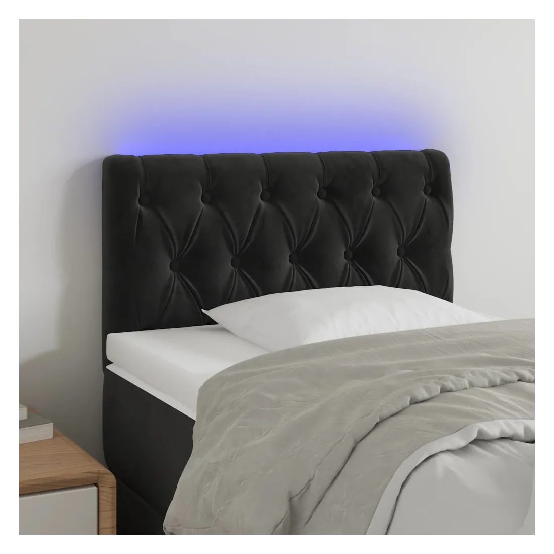 Cette tête de lit à LED classique, au design élégant, donne à votre cadre de lit une touche de modernité étonnante et convient parfaitement à toute chambre à coucher. Velours doux : le velours est un tissu doux et luxueux qui se reconnaît à son tas dense de fibres uniformément coupées qui ont une touche lisse. Le tissu en velours présente un toucher doux distinctif, ce qui le rend confortable au toucher.LED colorée : apportez de l'éclairage dans l'obscurité avec des lumières LED colorées !Hauteur réglable : la tête de lit est réglable en hauteur selon vos préférences.Excellent soutien : la tête de lit vous offre un excellent soutien du dos lorsque vous êtes assis dans votre lit pour lire ou regarder la télévision.Bande à LED découpable : cette bande à LED flexible peut être ajustée en longueur. Le symbole des ciseaux indique où la bande peut être coupée en toute sécurité sans l'endommager. Remarque :Seule la partie avec un symbole de ciseaux peut être coupée et seule la partie avec l'USB continuera à fonctionner comme avant.Chaque produit est livré avec un manuel de montage dans la boîte pour un montage facile.Ce produit est doté d'un connecteur USB, mais la source d'alimentation certifiée de USB 5V n'est pas incluse.