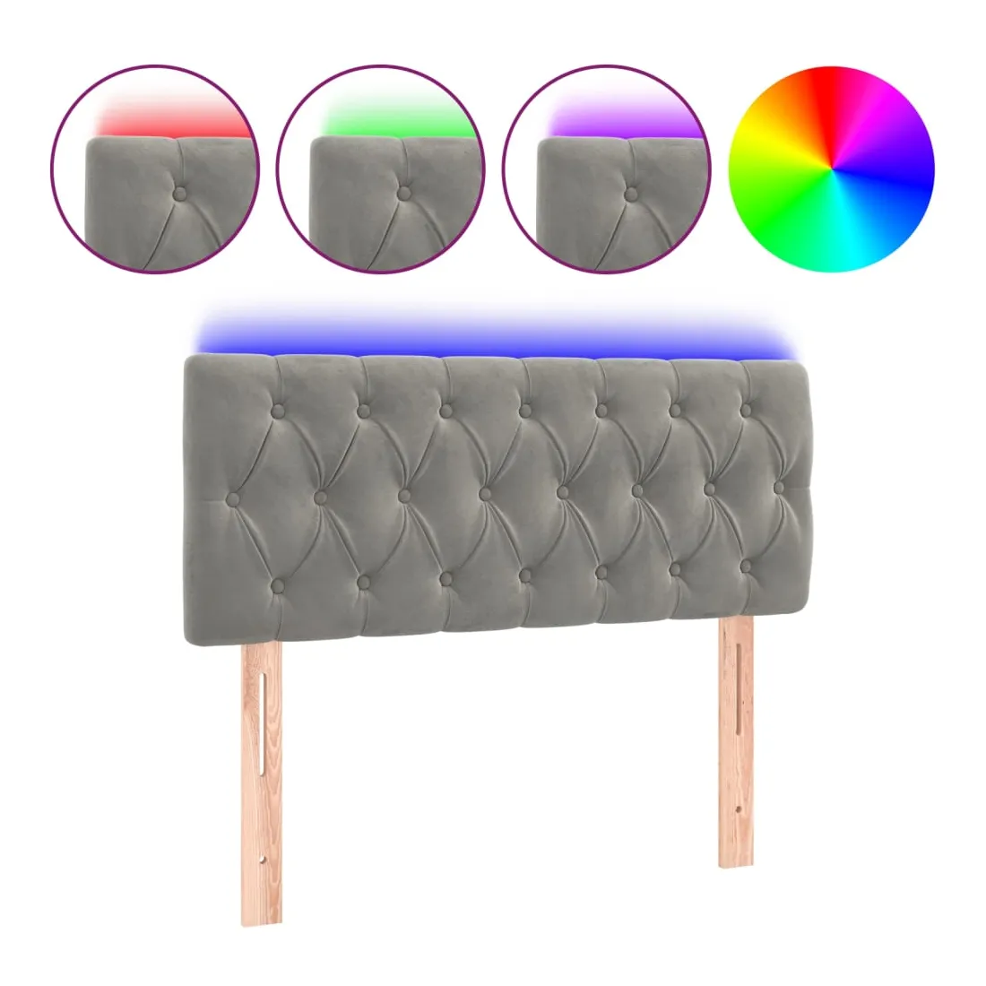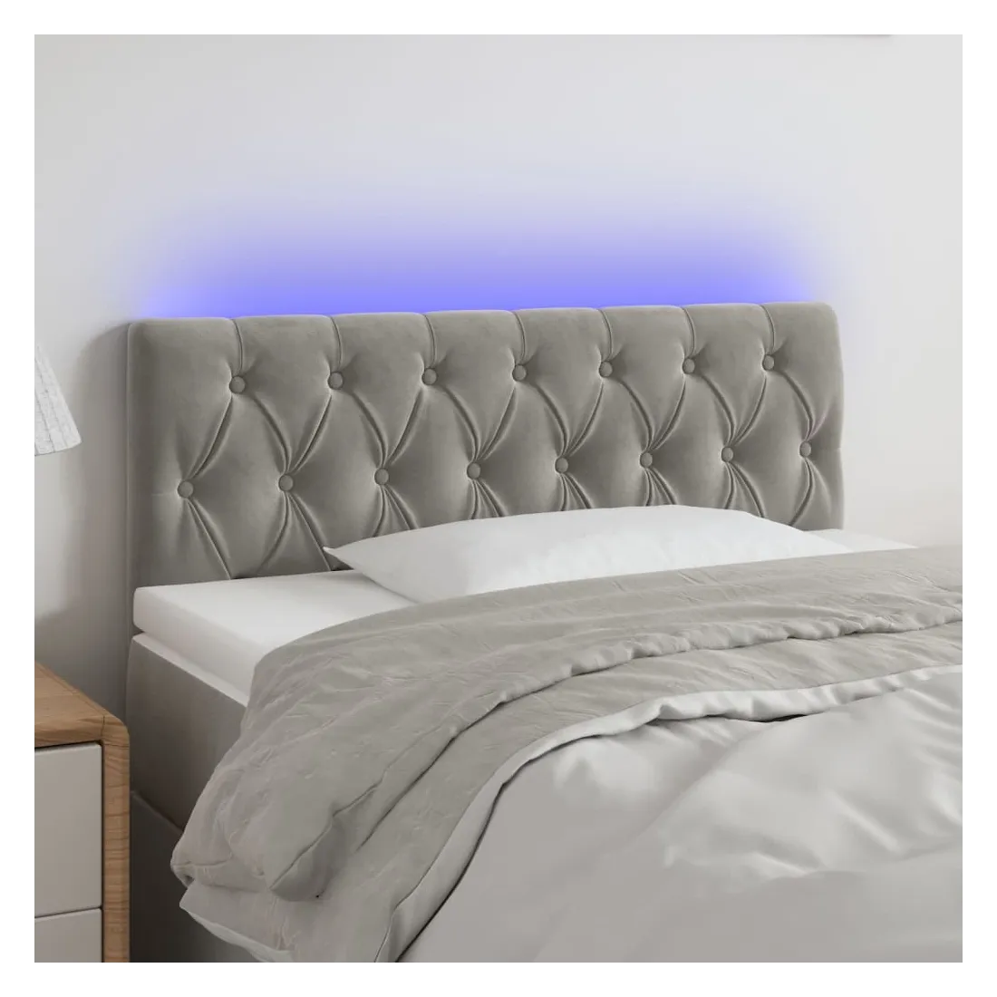 Cette tête de lit à LED classique, au design élégant, donne à votre cadre de lit une touche de modernité étonnante et convient parfaitement à toute chambre à coucher. Velours doux : le velours est un tissu doux et luxueux qui se reconnaît à son tas dense de fibres uniformément coupées qui ont une touche lisse. Le tissu en velours présente un toucher doux distinctif, ce qui le rend confortable au toucher.LED colorée : apportez de l'éclairage dans l'obscurité avec des lumières LED colorées !Hauteur réglable : la tête de lit est réglable en hauteur selon vos préférences.Excellent soutien : la tête de lit vous offre un excellent soutien du dos lorsque vous êtes assis dans votre lit pour lire ou regarder la télévision.Bande à LED découpable : cette bande à LED flexible peut être ajustée en longueur. Le symbole des ciseaux indique où la bande peut être coupée en toute sécurité sans l'endommager. Remarque :Seule la partie avec un symbole de ciseaux peut être coupée et seule la partie avec l'USB continuera à fonctionner comme avant.Chaque produit est livré avec un manuel de montage dans la boîte pour un montage facile.Ce produit est doté d'un connecteur USB, mais la source d'alimentation certifiée de USB 5V n'est pas incluse.