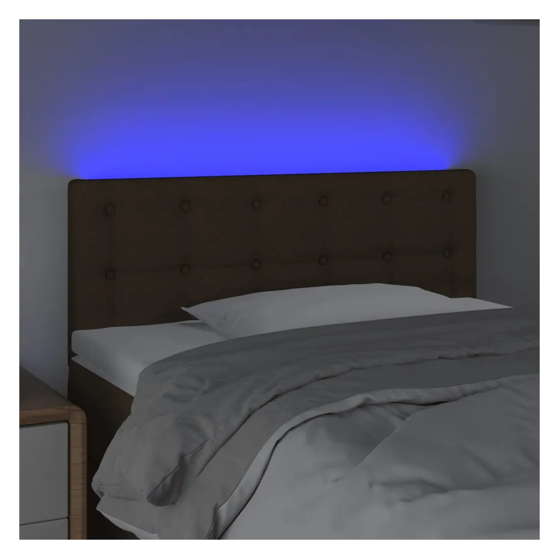 Cette tête de lit à LED classique, au design élégant, donne à votre cadre de lit une touche de modernité étonnante et convient parfaitement à toute chambre à coucher. Tissu durable : le tissu présente un aspect simple et épuré, et il est respirant et durable. LED colorée : apportez de l'éclairage dans l'obscurité avec des lumières LED colorées ! Hauteur réglable : la tête de lit est réglable en hauteur selon vos préférences. Excellent soutien : la tête de lit vous offre un excellent soutien du dos lorsque vous êtes assis dans votre lit pour lire ou regarder la télévision. Bande à LED découpable : cette bande à LED flexible peut être ajustée en longueur. Le symbole des ciseaux indique où la bande peut être coupée en toute sécurité sans l'endommager. Remarque : Seule la partie avec un sy