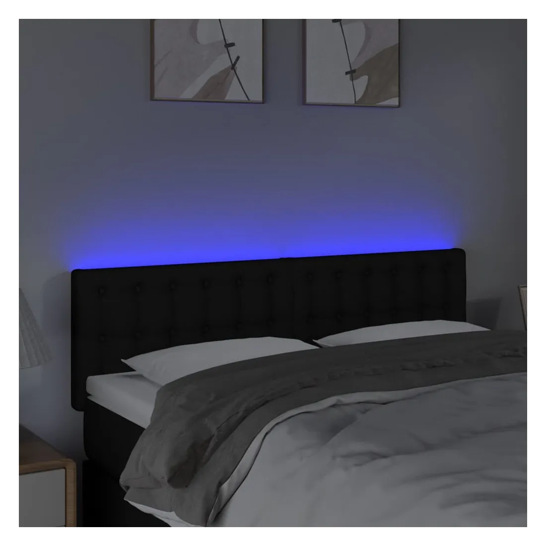 Cette tête de lit à LED classique, au design élégant, donne à votre cadre de lit une touche de modernité étonnante et convient parfaitement à toute chambre à coucher. Tissu durable : le tissu présente un aspect simple et épuré, et il est respirant et durable.LED colorée : apportez de l'éclairage dans l'obscurité avec des lumières LED colorées !Hauteur réglable : la tête de lit est réglable en hauteur selon vos préférences.Excellent soutien : la tête de lit vous offre un excellent soutien du dos lorsque vous êtes assis dans votre lit pour lire ou regarder la télévision.Bande à LED découpable : cette bande à LED flexible peut être ajustée en longueur. Le symbole des ciseaux indique où la bande peut être coupée en toute sécurité sans l'endommager. Remarque :Seule la partie avec un symbole de ciseaux peut être coupée et seule la partie avec l'USB continuera à fonctionner comme avant.Chaque produit est livré avec un manuel de montage dans la boîte pour un montage facile.Ce produit est doté d'un connecteur USB, mais la source d'alimentation certifiée de USB 5V n'est pas incluse.