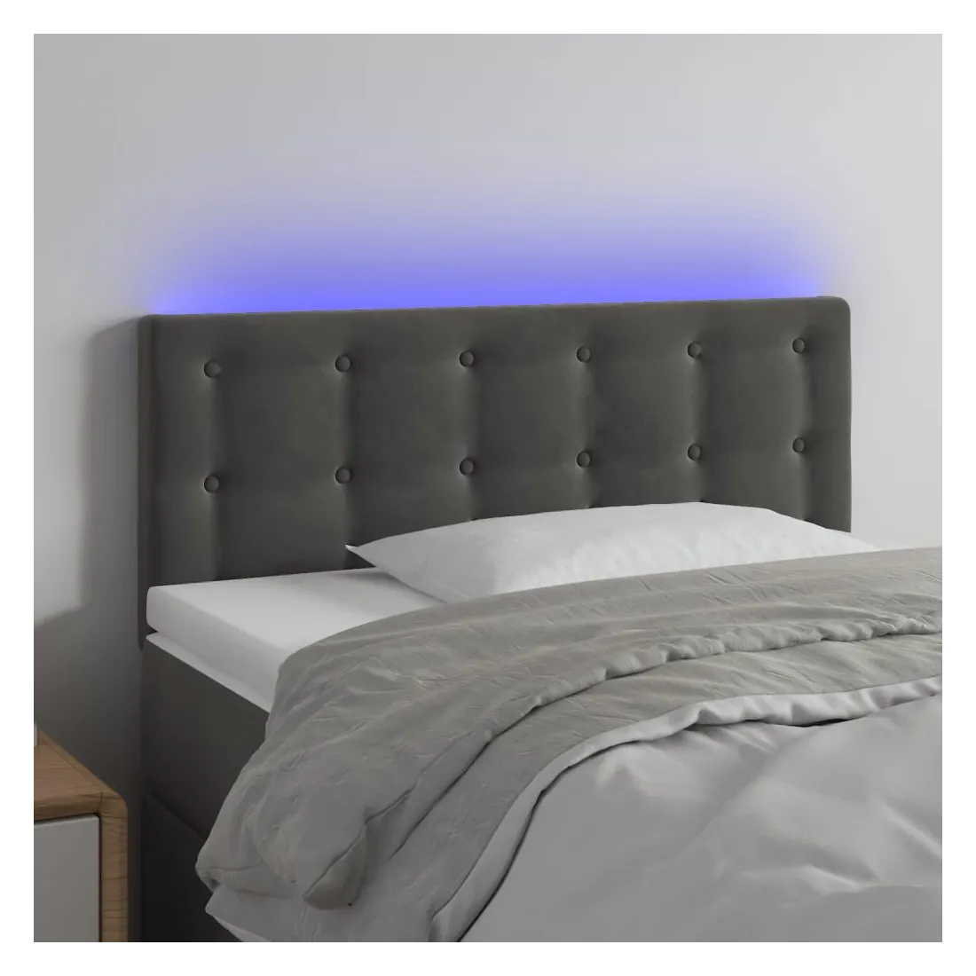 Cette tête de lit à LED classique, au design élégant, donne à votre cadre de lit une touche de modernité étonnante et convient parfaitement à toute chambre à coucher. Velours doux : le velours est un tissu doux et luxueux qui se reconnaît à son tas dense de fibres uniformément coupées qui ont une touche lisse. Le tissu en velours présente un toucher doux distinctif, ce qui le rend confortable au toucher.LED colorée : apportez de l'éclairage dans l'obscurité avec des lumières LED colorées !Hauteur réglable : la tête de lit est réglable en hauteur selon vos préférences.Excellent soutien : la tête de lit vous offre un excellent soutien du dos lorsque vous êtes assis dans votre lit pour lire ou regarder la télévision.Bande à LED découpable : cette bande à LED flexible peut être ajustée en longueur. Le symbole des ciseaux indique où la bande peut être coupée en toute sécurité sans l'endommager. Remarque :Seule la partie avec un symbole de ciseaux peut être coupée et seule la partie avec l'USB continuera à fonctionner comme avant.Chaque produit est livré avec un manuel de montage dans la boîte pour un montage facile.Ce produit est doté d'un connecteur USB, mais la source d'alimentation certifiée de USB 5V n'est pas incluse.