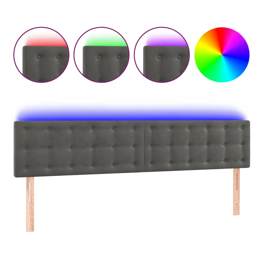 Cette tête de lit à LED classique, au design élégant, donne à votre cadre de lit une touche de modernité étonnante et convient parfaitement à toute chambre à coucher. Velours doux : le velours est un tissu doux et luxueux qui se reconnaît à son tas dense de fibres uniformément coupées qui ont une touche lisse. Le tissu en velours présente un toucher doux distinctif, ce qui le rend confortable au toucher.LED colorée : apportez de l'éclairage dans l'obscurité avec des lumières LED colorées !Hauteur réglable : la tête de lit est réglable en hauteur selon vos préférences.Excellent soutien : la tête de lit vous offre un excellent soutien du dos lorsque vous êtes assis dans votre lit pour lire ou regarder la télévision.Bande à LED découpable : cette bande à LED flexible peut être ajustée en longueur. Le symbole des ciseaux indique où la bande peut être coupée en toute sécurité sans l'endommager. Remarque :Seule la partie avec un symbole de ciseaux peut être coupée et seule la partie avec l'USB continuera à fonctionner comme avant.Chaque produit est livré avec un manuel de montage dans la boîte pour un montage facile.Ce produit est doté d'un connecteur USB, mais la source d'alimentation certifiée de USB 5V n'est pas incluse.