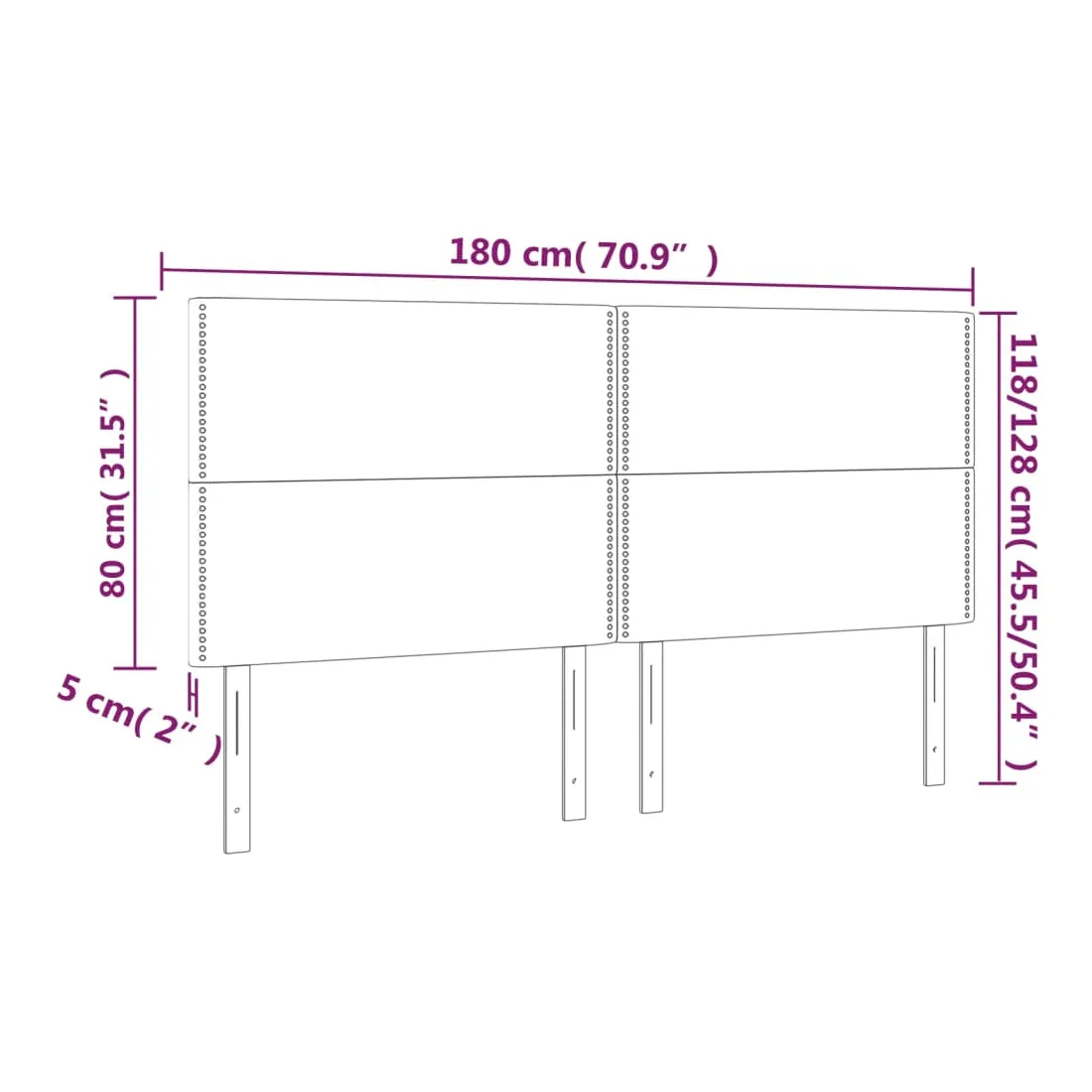 • Dimensions : 180 x 5 x 118/128 cm (l x P x H)