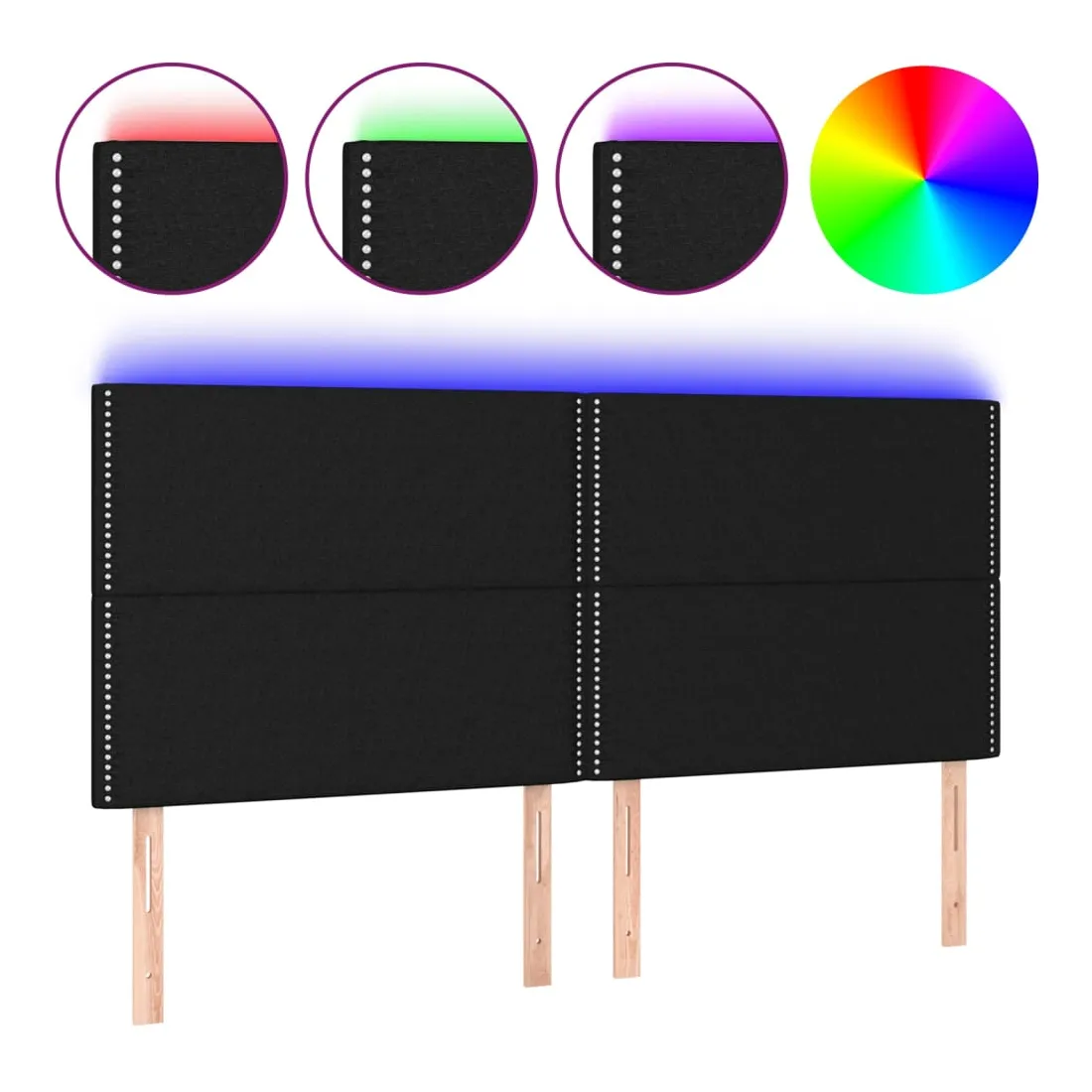 Cette tête de lit à LED classique, au design élégant, donne à votre cadre de lit une touche de modernité étonnante et convient parfaitement à toute chambre à coucher. Tissu durable : le tissu présente un aspect simple et épuré, et il est respirant et durable. LED colorée : apportez de l'éclairage dans l'obscurité avec des lumières LED colorées ! Hauteur réglable : la tête de lit est réglable en hauteur selon vos préférences. Excellent soutien : la tête de lit vous offre un excellent soutien du dos lorsque vous êtes assis dans votre lit pour lire ou regarder la télévision. Bande à LED découpable : cette bande à LED flexible peut être ajustée en longueur. Le symbole des ciseaux indique où la bande peut être coupée en toute sécurité sans l'endommager. Remarque : Seule la partie avec un sy