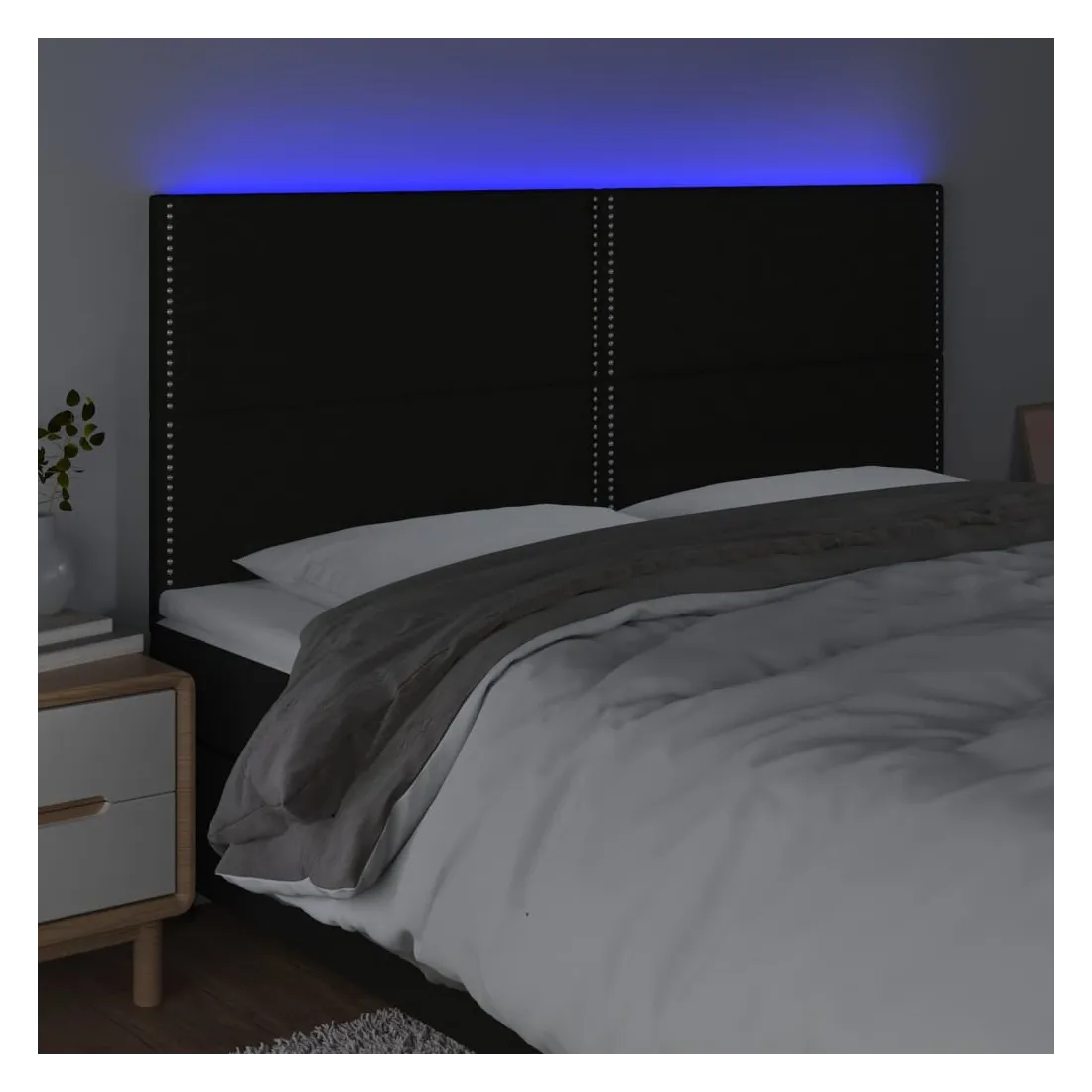 Cette tête de lit à LED classique, au design élégant, donne à votre cadre de lit une touche de modernité étonnante et convient parfaitement à toute chambre à coucher. Tissu durable : le tissu présente un aspect simple et épuré, et il est respirant et durable.LED colorée : apportez de l'éclairage dans l'obscurité avec des lumières LED colorées !Hauteur réglable : la tête de lit est réglable en hauteur selon vos préférences.Excellent soutien : la tête de lit vous offre un excellent soutien du dos lorsque vous êtes assis dans votre lit pour lire ou regarder la télévision.Bande à LED découpable : cette bande à LED flexible peut être ajustée en longueur. Le symbole des ciseaux indique où la bande peut être coupée en toute sécurité sans l'endommager. Remarque :Seule la partie avec un symbole de ciseaux peut être coupée et seule la partie avec l'USB continuera à fonctionner comme avant.Chaque produit est livré avec un manuel de montage dans la boîte pour un montage facile.Ce produit est doté d'un connecteur USB, mais la source d'alimentation certifiée de USB 5V n'est pas incluse.