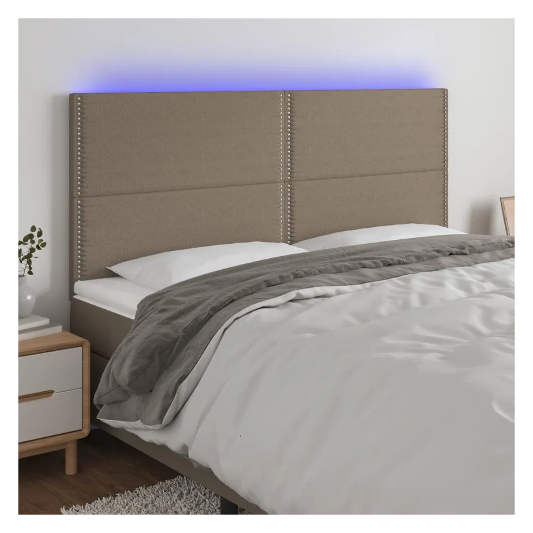Cette tête de lit à LED classique, au design élégant, donne à votre cadre de lit une touche de modernité étonnante et convient parfaitement à toute chambre à coucher. Tissu durable : le tissu présente un aspect simple et épuré, et il est respirant et durable.LED colorée : apportez de l'éclairage dans l'obscurité avec des lumières LED colorées !Hauteur réglable : la tête de lit est réglable en hauteur selon vos préférences.Excellent soutien : la tête de lit vous offre un excellent soutien du dos lorsque vous êtes assis dans votre lit pour lire ou regarder la télévision.Bande à LED découpable : cette bande à LED flexible peut être ajustée en longueur. Le symbole des ciseaux indique où la bande peut être coupée en toute sécurité sans l'endommager. Remarque :Seule la partie avec un symbole de ciseaux peut être coupée et seule la partie avec l'USB continuera à fonctionner comme avant.Chaque produit est livré avec un manuel de montage dans la boîte pour un montage facile.Ce produit est doté d'un connecteur USB, mais la source d'alimentation certifiée de USB 5V n'est pas incluse.