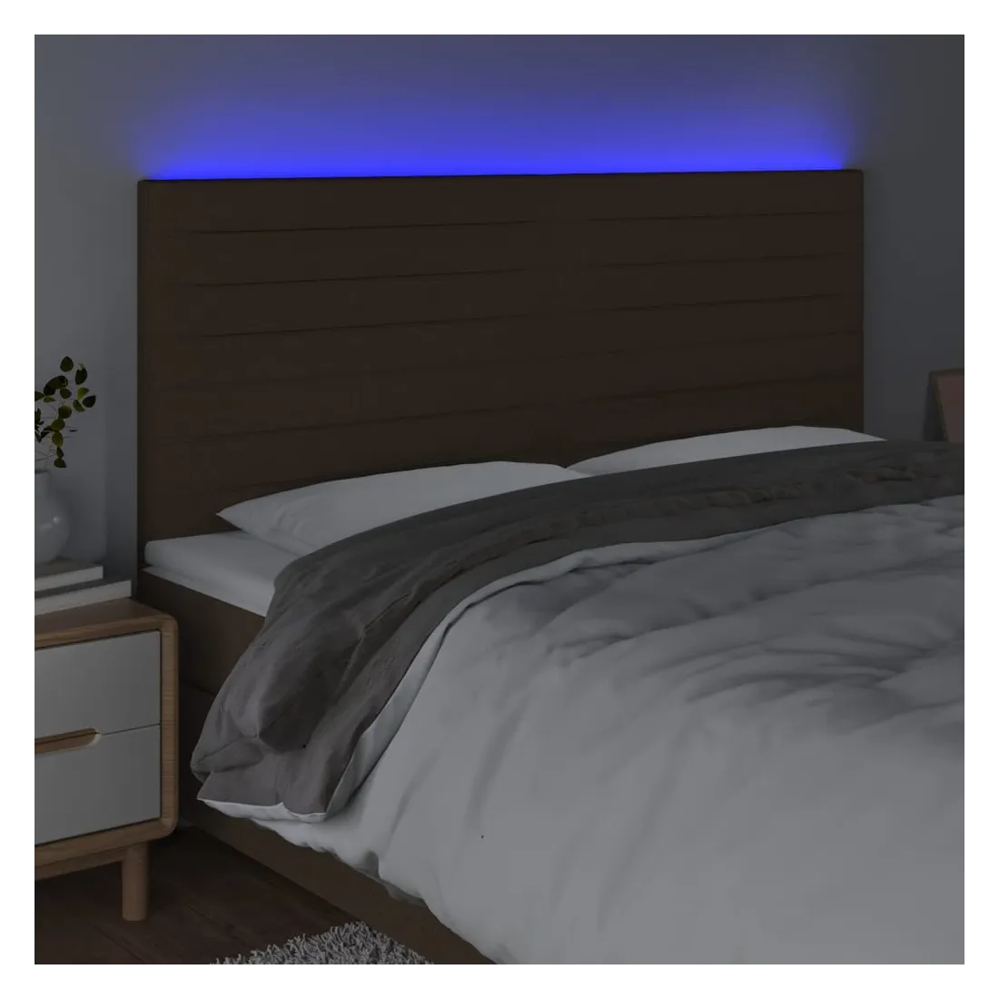 Cette tête de lit à LED classique, au design élégant, donne à votre cadre de lit une touche de modernité étonnante et convient parfaitement à toute chambre à coucher. Tissu durable : le tissu présente un aspect simple et épuré, et il est respirant et durable.LED colorée : apportez de l'éclairage dans l'obscurité avec des lumières LED colorées !Hauteur réglable : la tête de lit est réglable en hauteur selon vos préférences.Excellent soutien : la tête de lit vous offre un excellent soutien du dos lorsque vous êtes assis dans votre lit pour lire ou regarder la télévision.Bande à LED découpable : cette bande à LED flexible peut être ajustée en longueur. Le symbole des ciseaux indique où la bande peut être coupée en toute sécurité sans l'endommager. Remarque :Seule la partie avec un symbole de ciseaux peut être coupée et seule la partie avec l'USB continuera à fonctionner comme avant.Chaque produit est livré avec un manuel de montage dans la boîte pour un montage facile.Ce produit est doté d'un connecteur USB, mais la source d'alimentation certifiée de USB 5V n'est pas incluse.