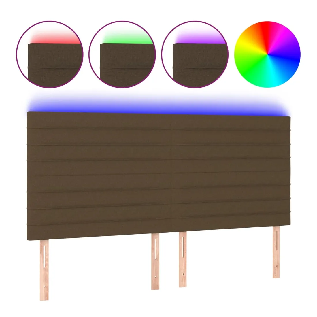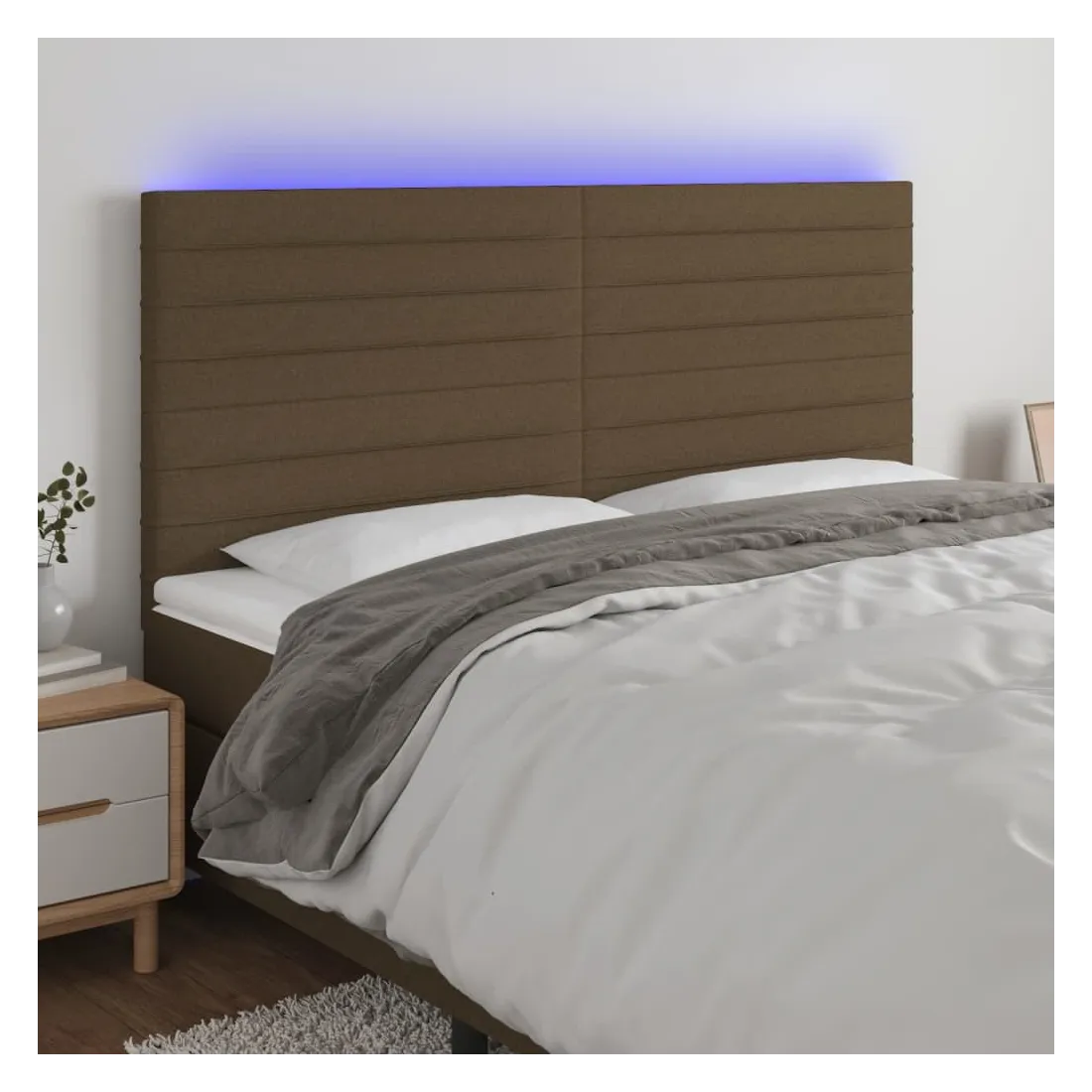 Tête de lit à LED Marron foncé 200x5x118/128 cm Tissu