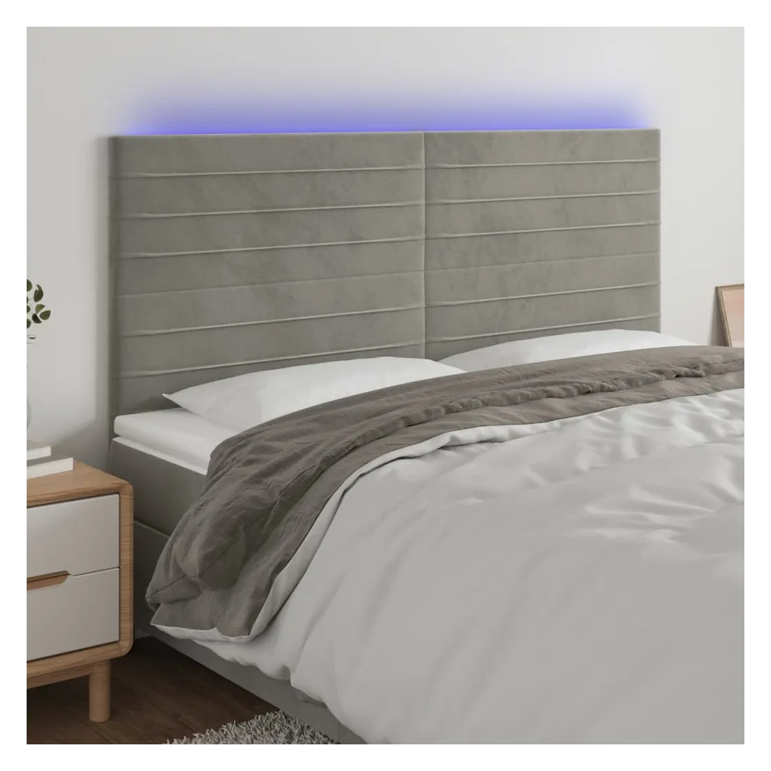 Tête de lit à LED Gris clair 200x5x118/128 cm Velours