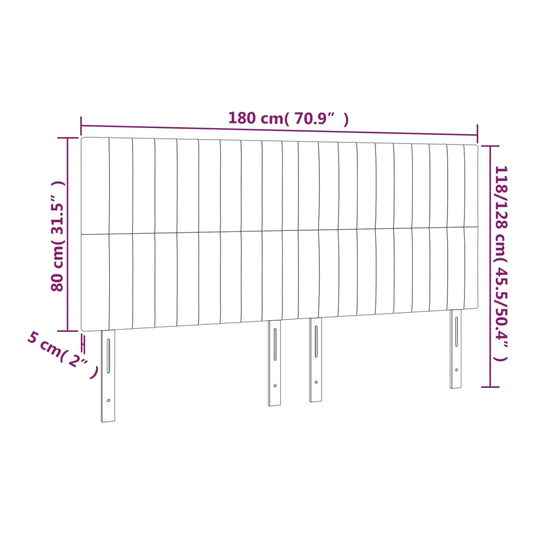180 x 5 x 118/128 cm