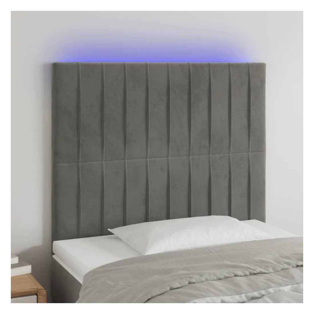 Cette tête de lit à LED classique, au design élégant, donne à votre cadre de lit une touche de modernité étonnante et convient parfaitement à toute chambre à coucher. Velours doux : le velours est un tissu doux et luxueux qui se reconnaît à son tas dense de fibres uniformément coupées qui ont une touche lisse. Le tissu en velours présente un toucher doux distinctif, ce qui le rend confortable au toucher.LED colorée : apportez de l'éclairage dans l'obscurité avec des lumières LED colorées !Hauteur réglable : la tête de lit est réglable en hauteur selon vos préférences.Excellent soutien : la tête de lit vous offre un excellent soutien du dos lorsque vous êtes assis dans votre lit pour lire ou regarder la télévision.Bande à LED découpable : cette bande à LED flexible peut être ajustée en longueur. Le symbole des ciseaux indique où la bande peut être coupée en toute sécurité sans l'endommager. Remarque :Seule la partie avec un symbole de ciseaux peut être coupée et seule la partie avec l'USB continuera à fonctionner comme avant.Chaque produit est livré avec un manuel de montage dans la boîte pour un montage facile.Ce produit est doté d'un connecteur USB, mais la source d'alimentation certifiée de USB 5V n'est pas incluse.