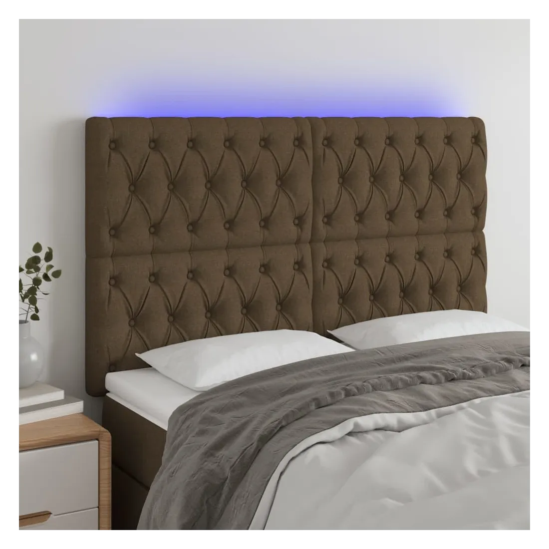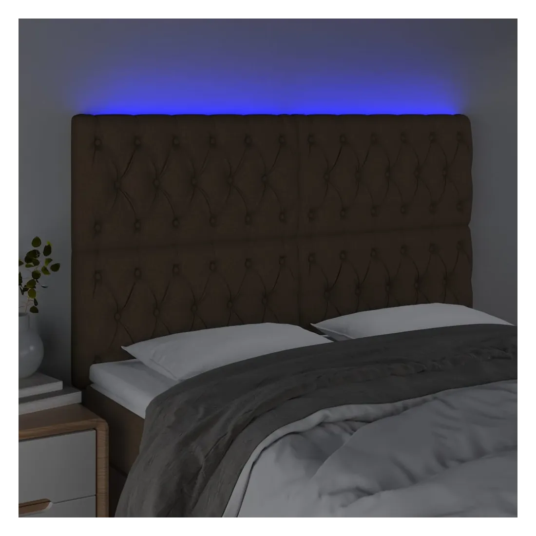 Tête de lit à LED Marron foncé 160x7x118/128 cm Tissu