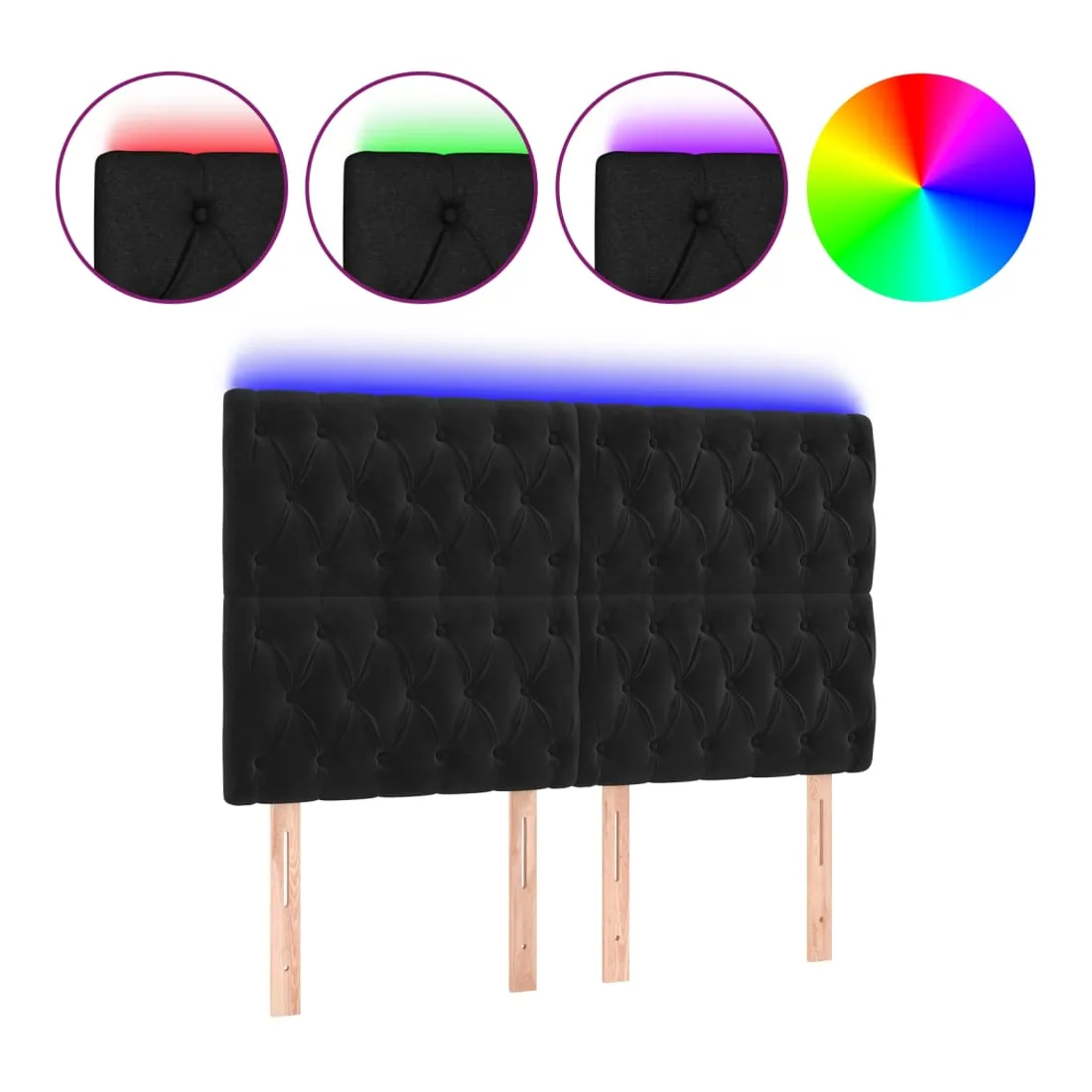 Tête de lit à LED Noir 144x7x118/128 cm Velours
