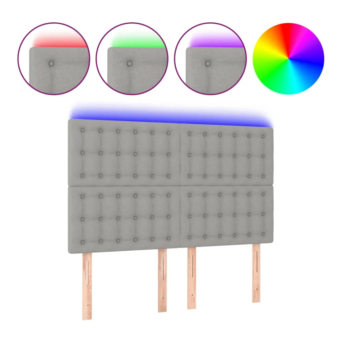 Cette tête de lit à LED classique, au design élégant, donne à votre cadre de lit une touche de modernité étonnante et convient parfaitement à toute chambre à coucher. Tissu durable : le tissu présente un aspect simple et épuré, et il est respirant et durable. LED colorée : apportez de l'éclairage dans l'obscurité avec des lumières LED colorées ! Hauteur réglable : la tête de lit est réglable en hauteur selon vos préférences. Excellent soutien : la tête de lit vous offre un excellent soutien du dos lorsque vous êtes assis dans votre lit pour lire ou regarder la télévision. Bande à LED découpable : cette bande à LED flexible peut être ajustée en longueur. Le symbole des ciseaux indique où la bande peut être coupée en toute sécurité sans l'endommager. Remarque : Seule la partie avec un sy