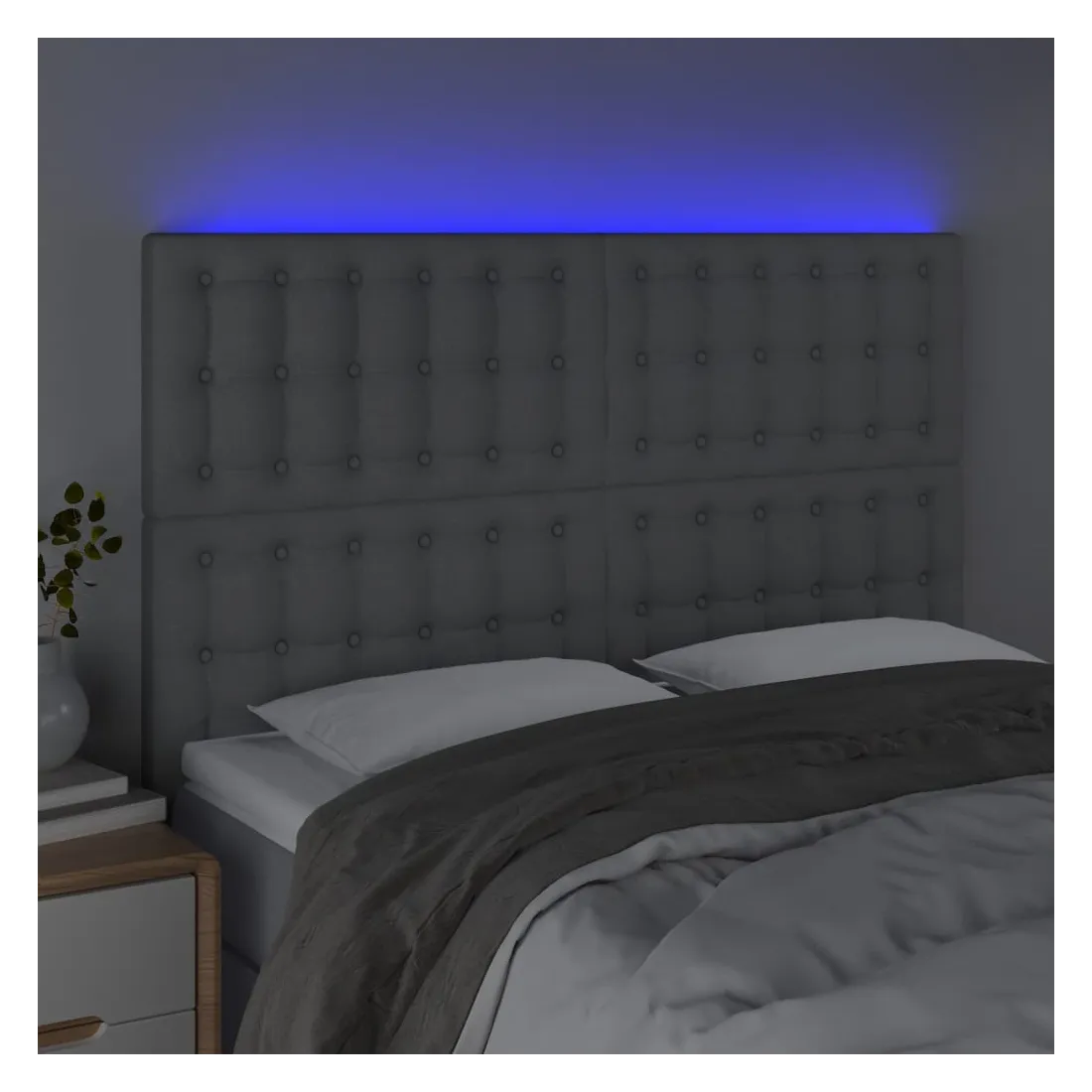 Cette tête de lit à LED classique, au design élégant, donne à votre cadre de lit une touche de modernité étonnante et convient parfaitement à toute chambre à coucher. Tissu durable : le tissu présente un aspect simple et épuré, et il est respirant et durable.LED colorée : apportez de l'éclairage dans l'obscurité avec des lumières LED colorées !Hauteur réglable : la tête de lit est réglable en hauteur selon vos préférences.Excellent soutien : la tête de lit vous offre un excellent soutien du dos lorsque vous êtes assis dans votre lit pour lire ou regarder la télévision.Bande à LED découpable : cette bande à LED flexible peut être ajustée en longueur. Le symbole des ciseaux indique où la bande peut être coupée en toute sécurité sans l'endommager. Remarque :Seule la partie avec un symbole de ciseaux peut être coupée et seule la partie avec l'USB continuera à fonctionner comme avant.Chaque produit est livré avec un manuel de montage dans la boîte pour un montage facile.Ce produit est doté d'un connecteur USB, mais la source d'alimentation certifiée de USB 5V n'est pas incluse.