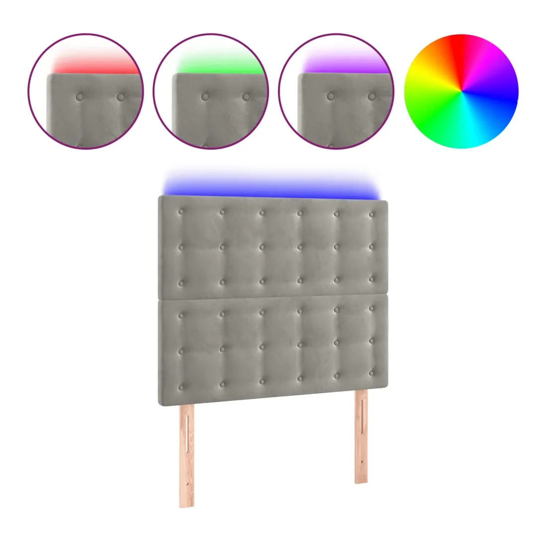 Cette tête de lit à LED classique, au design élégant, donne à votre cadre de lit une touche de modernité étonnante et convient parfaitement à toute chambre à coucher. Velours doux : le velours est un tissu doux et luxueux qui se reconnaît à son tas dense de fibres uniformément coupées qui ont une touche lisse. Le tissu en velours présente un toucher doux distinctif, ce qui le rend confortable au toucher. LED colorée : apportez de l'éclairage dans l'obscurité avec des lumières LED colorées ! Hauteur réglable : la tête de lit est réglable en hauteur selon vos préférences. Excellent soutien : la tête de lit vous offre un excellent soutien du dos lorsque vous êtes assis dans votre lit pour lire ou regarder la télévision. Bande à LED découpable : cette bande à LED flexible peut être ajustée