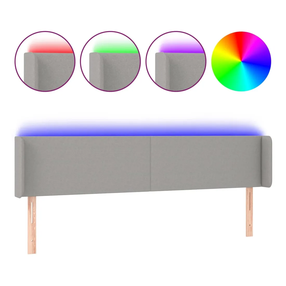 Cette tête de lit à LED classique, au design élégant, donne à votre cadre de lit une touche de modernité étonnante et convient parfaitement à toute chambre à coucher. Tissu durable : le tissu présente un aspect simple et épuré, et il est respirant et durable. LED colorée : apportez de l'éclairage dans l'obscurité avec des lumières LED colorées ! Hauteur réglable : la tête de lit est réglable en hauteur selon vos préférences. Excellent soutien : la tête de lit vous offre un excellent soutien du dos lorsque vous êtes assis dans votre lit pour lire ou regarder la télévision. Bande à LED découpable : cette bande à LED flexible peut être ajustée en longueur. Le symbole des ciseaux indique où la bande peut être coupée en toute sécurité sans l'endommager. Remarque : Seule la partie avec un sy