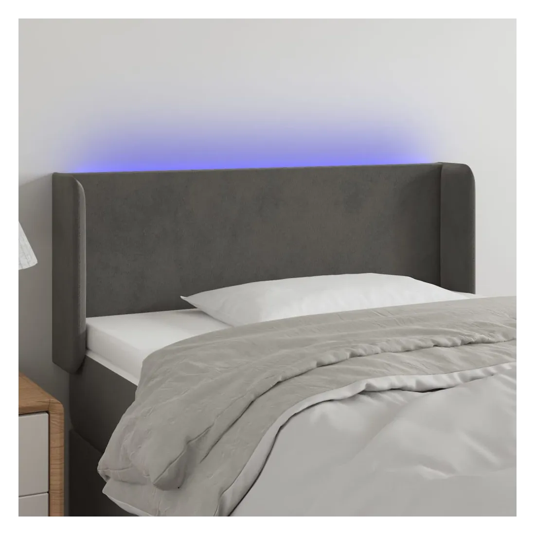 Cette tête de lit à LED classique, au design élégant, donne à votre cadre de lit une touche de modernité étonnante et convient parfaitement à toute chambre à coucher. Velours doux : le velours est un tissu doux et luxueux qui se reconnaît à son tas dense de fibres uniformément coupées qui ont une touche lisse. Le tissu en velours présente un toucher doux distinctif, ce qui le rend confortable au toucher.LED colorée : apportez de l'éclairage dans l'obscurité avec des lumières LED colorées !Hauteur réglable : la tête de lit est réglable en hauteur selon vos préférences.Excellent soutien : la tête de lit vous offre un excellent soutien du dos lorsque vous êtes assis dans votre lit pour lire ou regarder la télévision.Bande à LED découpable : cette bande à LED flexible peut être ajustée en longueur. Le symbole des ciseaux indique où la bande peut être coupée en toute sécurité sans l'endommager. Remarque :Seule la partie avec un symbole de ciseaux peut être coupée et seule la partie avec l'USB continuera à fonctionner comme avant.Chaque produit est livré avec un manuel de montage dans la boîte pour un montage facile.Ce produit est doté d'un connecteur USB, mais la source d'alimentation certifiée de USB 5V n'est pas incluse.