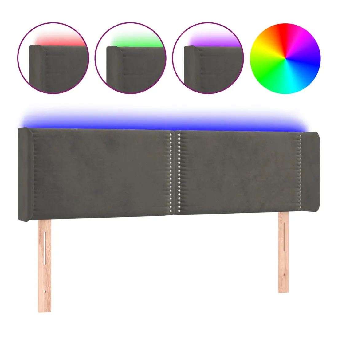 Tête de lit à LED Gris foncé 147x16x78/88 cm Velours
