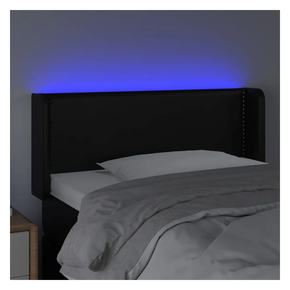 Cette tête de lit à LED classique, au design élégant, donne à votre cadre de lit une touche de modernité étonnante et convient parfaitement à toute chambre à coucher. Similicuir durable : le similicuir de qualité supérieure est un matériau très durable. Il est résistant aux taches, ce qui le rend facile à nettoyer avec un chiffon humide. La surface lisse donne également un aspect luxueux et la beauté du cuir véritable.LED colorée : apportez de l'éclairage dans l'obscurité avec des lumières LED colorées !Hauteur réglable : la tête de lit est réglable en hauteur selon vos préférences.Excellent soutien : la tête de lit vous offre un excellent soutien du dos lorsque vous êtes assis dans votre lit pour lire ou regarder la télévision.Bande à LED découpable : cette bande à LED flexible peut être ajustée en longueur. Le symbole des ciseaux indique où la bande peut être coupée en toute sécurité sans l'endommager. Remarque :Seule la partie avec un symbole de ciseaux peut être coupée et seule la partie avec l'USB continuera à fonctionner comme avant.Chaque produit est livré avec un manuel de montage dans la boîte pour un montage facile.Ce produit est doté d'un connecteur USB, mais la source d'alimentation certifiée de USB 5V n'est pas incluse.