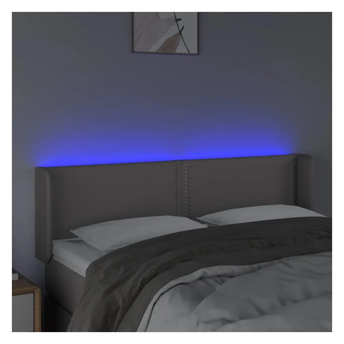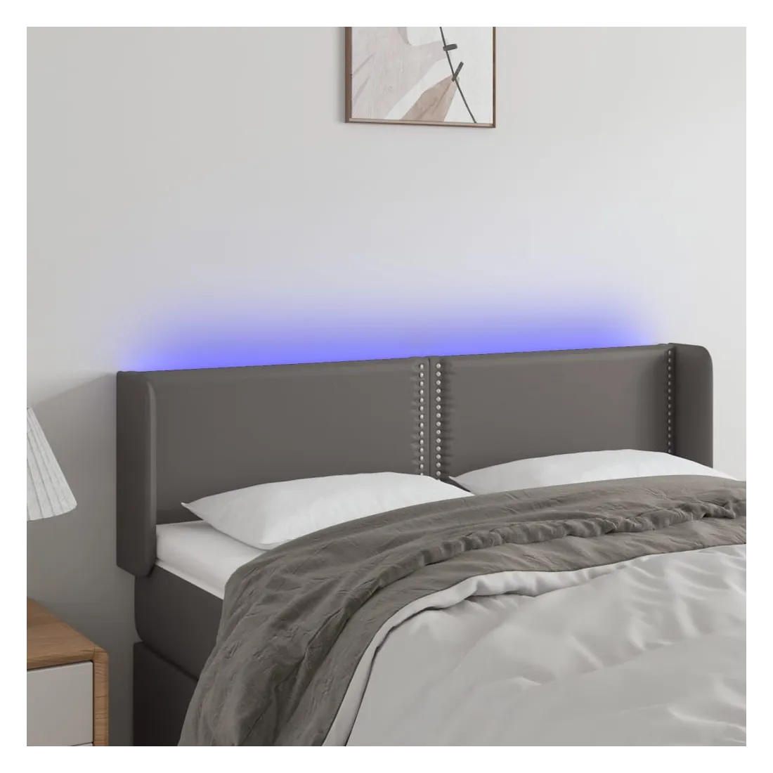 Cette tête de lit à LED classique, au design élégant, donne à votre cadre de lit une touche de modernité étonnante et convient parfaitement à toute chambre à coucher. Similicuir durable : le similicuir de qualité supérieure est un matériau très durable. Il est résistant aux taches, ce qui le rend facile à nettoyer avec un chiffon humide. La surface lisse donne également un aspect luxueux et la beauté du cuir véritable.LED colorée : apportez de l'éclairage dans l'obscurité avec des lumières LED colorées !Hauteur réglable : la tête de lit est réglable en hauteur selon vos préférences.Excellent soutien : la tête de lit vous offre un excellent soutien du dos lorsque vous êtes assis dans votre lit pour lire ou regarder la télévision.Bande à LED découpable : cette bande à LED flexible peut être ajustée en longueur. Le symbole des ciseaux indique où la bande peut être coupée en toute sécurité sans l'endommager. Remarque :Seule la partie avec un symbole de ciseaux peut être coupée et seule la partie avec l'USB continuera à fonctionner comme avant.Chaque produit est livré avec un manuel de montage dans la boîte pour un montage facile.Ce produit est doté d'un connecteur USB, mais la source d'alimentation certifiée de USB 5V n'est pas incluse.