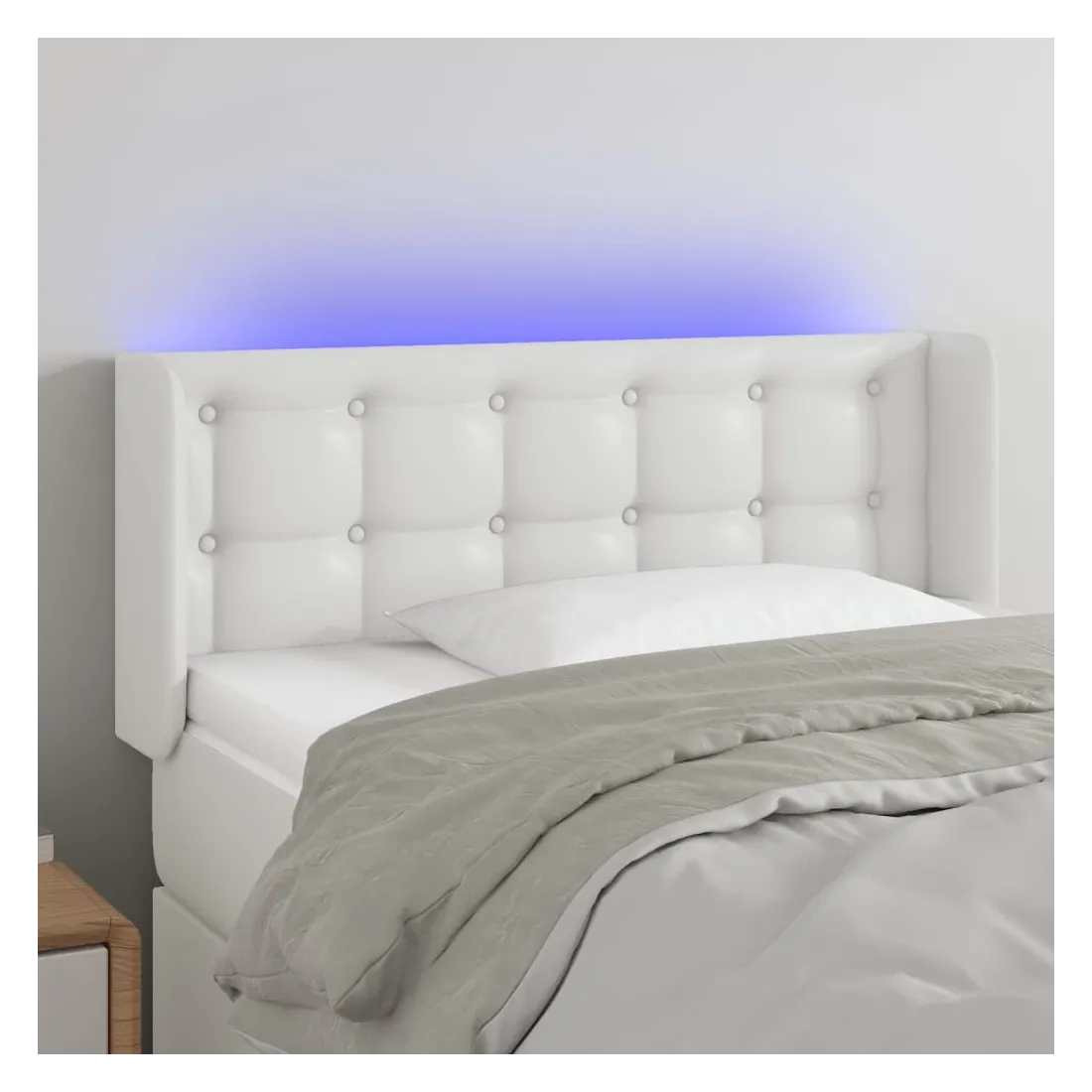 Cette tête de lit à LED classique, au design élégant, donne à votre cadre de lit une touche de modernité étonnante et convient parfaitement à toute chambre à coucher. Similicuir durable : le similicuir de qualité supérieure est un matériau très durable. Il est résistant aux taches, ce qui le rend facile à nettoyer avec un chiffon humide. La surface lisse donne également un aspect luxueux et la beauté du cuir véritable.LED colorée : apportez de l'éclairage dans l'obscurité avec des lumières LED colorées !Hauteur réglable : la tête de lit est réglable en hauteur selon vos préférences.Excellent soutien : la tête de lit vous offre un excellent soutien du dos lorsque vous êtes assis dans votre lit pour lire ou regarder la télévision.Bande à LED découpable : cette bande à LED flexible peut être ajustée en longueur. Le symbole des ciseaux indique où la bande peut être coupée en toute sécurité sans l'endommager. Remarque :Seule la partie avec un symbole de ciseaux peut être coupée et seule la partie avec l'USB continuera à fonctionner comme avant.Chaque produit est livré avec un manuel de montage dans la boîte pour un montage facile.Ce produit est doté d'un connecteur USB, mais la source d'alimentation certifiée de USB 5V n'est pas incluse.