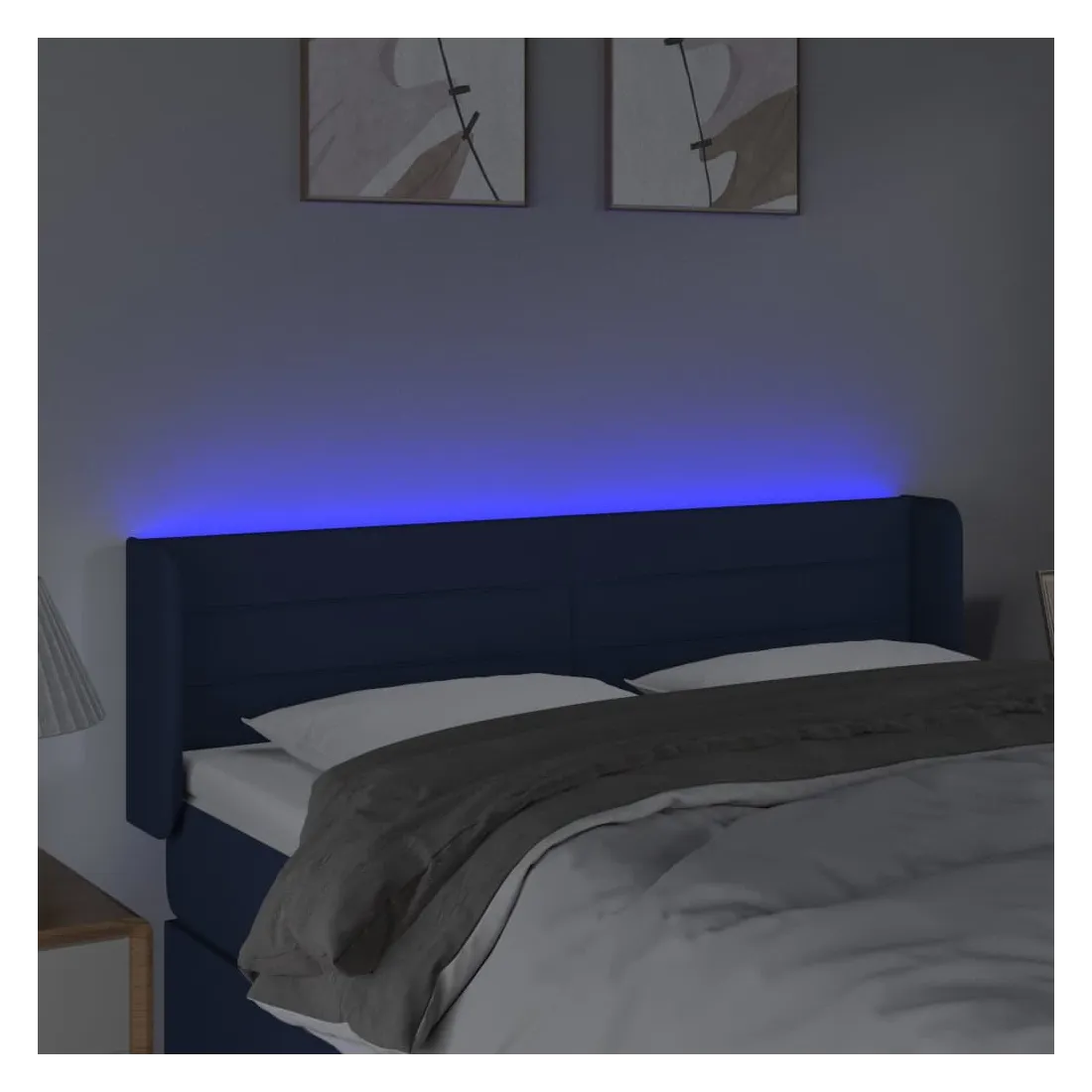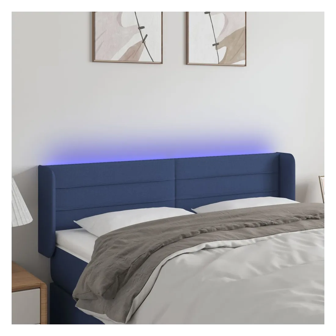 Tête de lit à LED Bleu 147x16x78/88 cm Tissu
