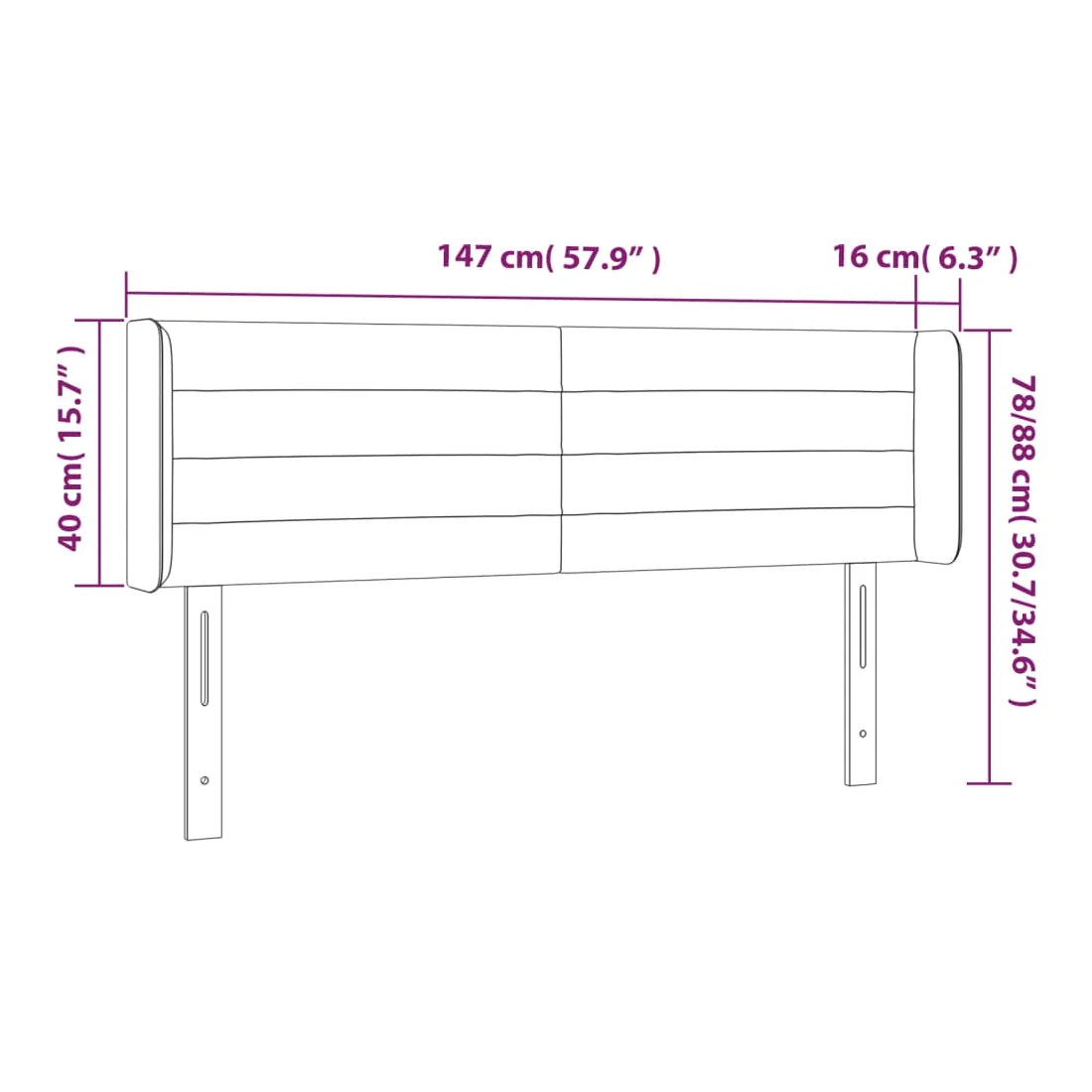 147 x 16 x 78/88 cm