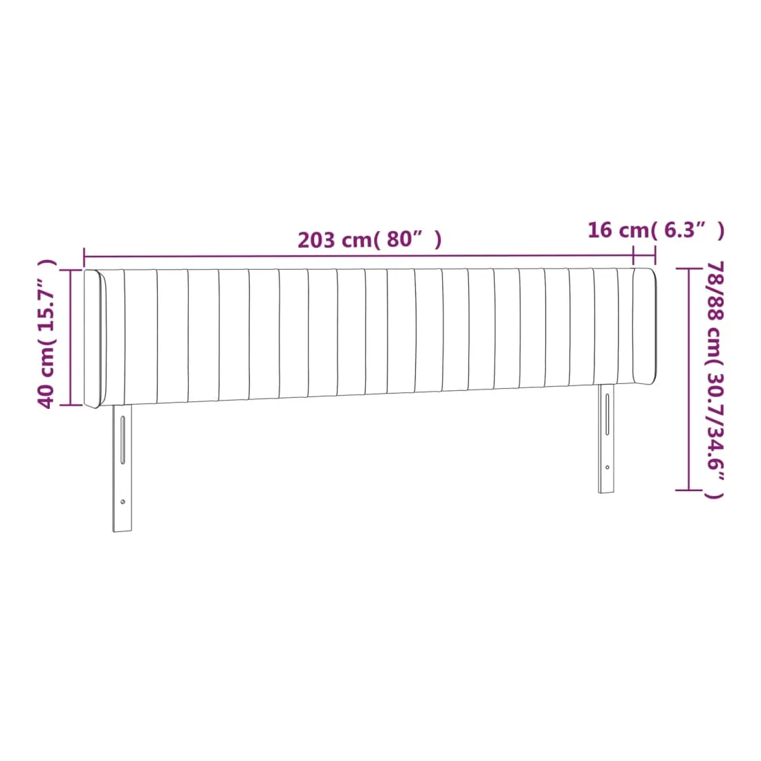 - 203 x 16 x 78/88 cm