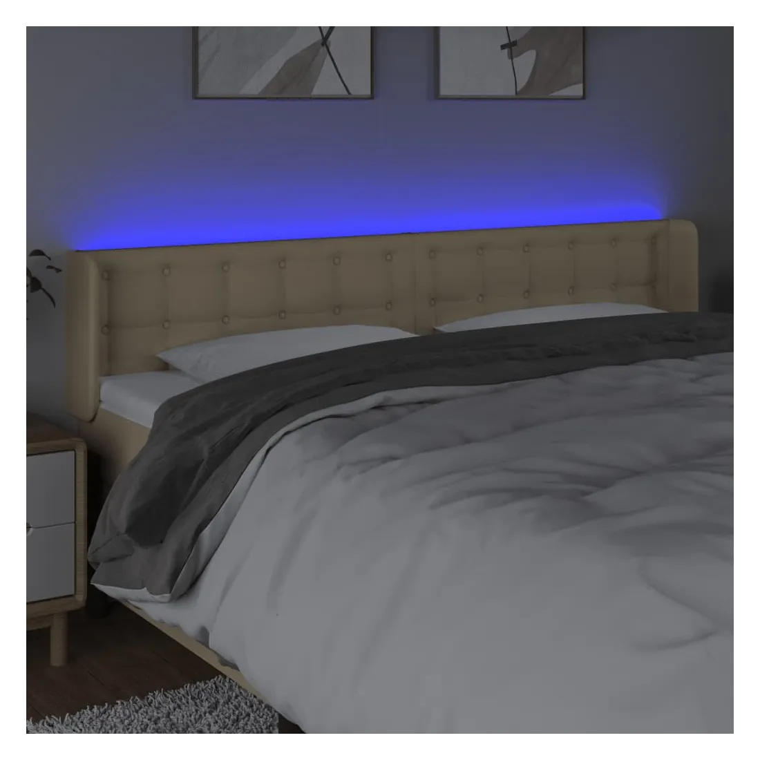 Cette tête de lit à LED classique, au design élégant, donne à votre cadre de lit une touche de modernité étonnante et convient parfaitement à toute chambre à coucher. Tissu durable : le tissu présente un aspect simple et épuré, et il est respirant et durable.LED colorée : apportez de l'éclairage dans l'obscurité avec des lumières LED colorées !Hauteur réglable : la tête de lit est réglable en hauteur selon vos préférences.Excellent soutien : la tête de lit vous offre un excellent soutien du dos lorsque vous êtes assis dans votre lit pour lire ou regarder la télévision.Bande à LED découpable : cette bande à LED flexible peut être ajustée en longueur. Le symbole des ciseaux indique où la bande peut être coupée en toute sécurité sans l'endommager. Remarque :Seule la partie avec un symbole de ciseaux peut être coupée et seule la partie avec l'USB continuera à fonctionner comme avant.Chaque produit est livré avec un manuel de montage dans la boîte pour un montage facile.Ce produit est doté d'un connecteur USB, mais la source d'alimentation certifiée de USB 5V n'est pas incluse.