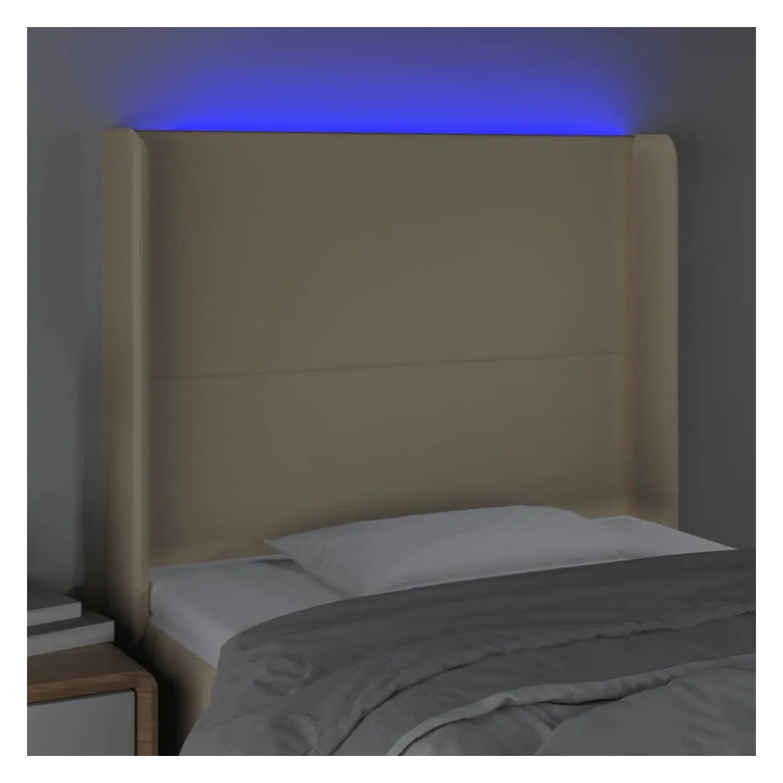 Cette tête de lit à LED classique, au design élégant, donne à votre cadre de lit une touche de modernité étonnante et convient parfaitement à toute chambre à coucher. Tissu durable : le tissu présente un aspect simple et épuré, et il est respirant et durable. LED colorée : apportez de l'éclairage dans l'obscurité avec des lumières LED colorées ! Hauteur réglable : la tête de lit est réglable en hauteur selon vos préférences. Excellent soutien : la tête de lit vous offre un excellent soutien du dos lorsque vous êtes assis dans votre lit pour lire ou regarder la télévision. Bande à LED découpable : cette bande à LED flexible peut être ajustée en longueur. Le symbole des ciseaux indique où la bande peut être coupée en toute sécurité sans l'endommager. Remarque : Seule la partie avec un sy