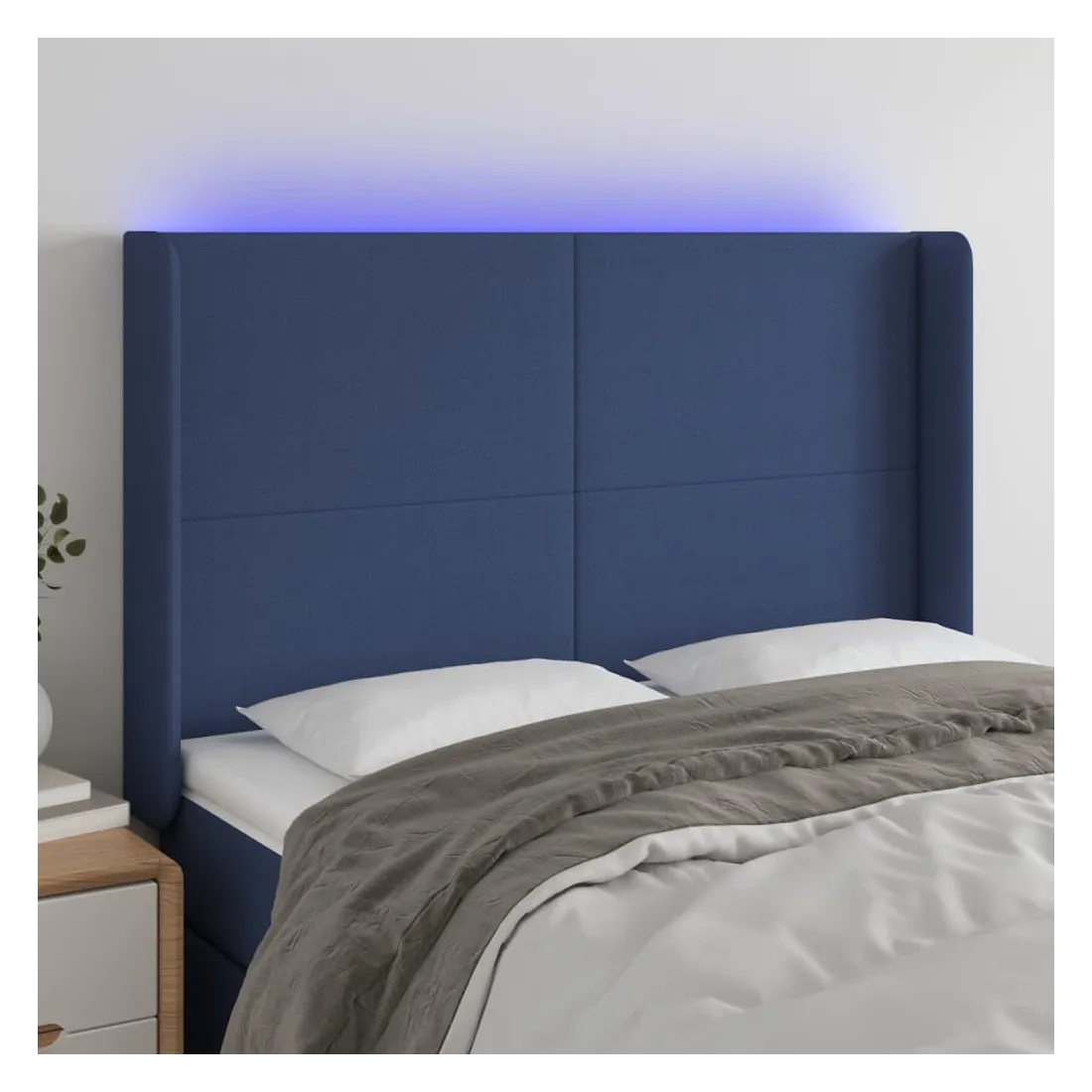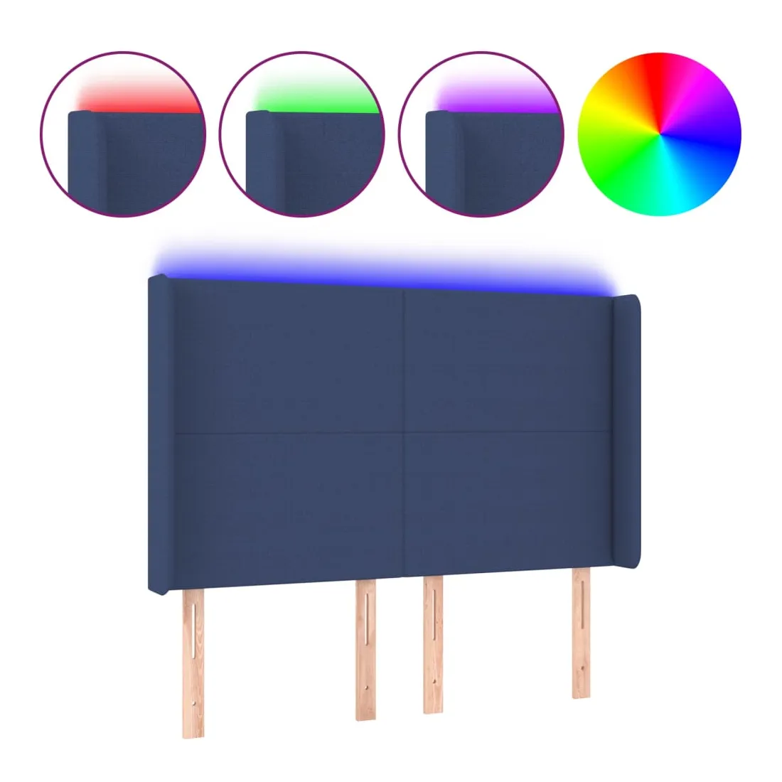 Tête de lit à LED Bleu 147x16x118/128 cm Tissu