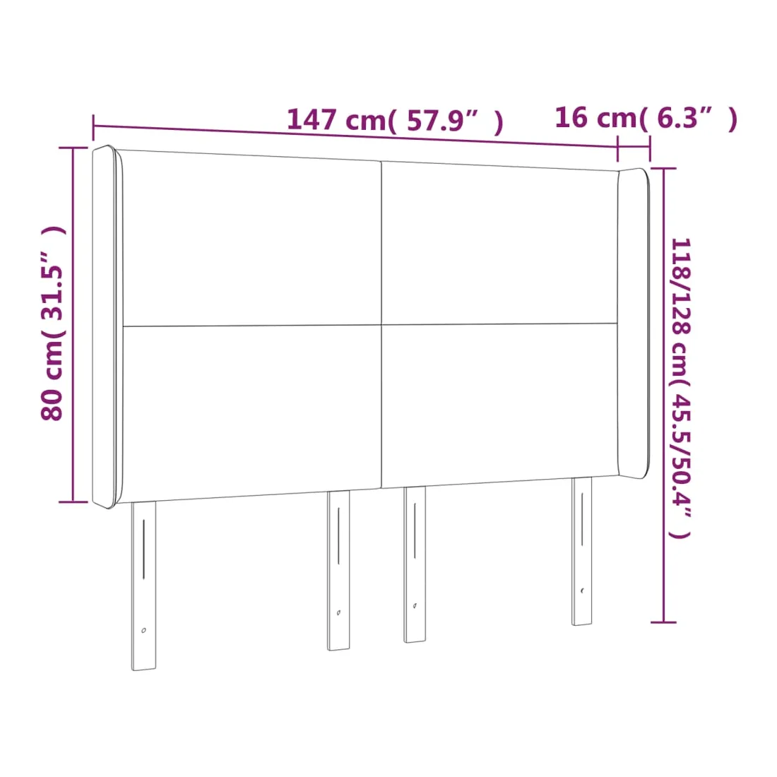 147 x 16 x 118/128 cm
