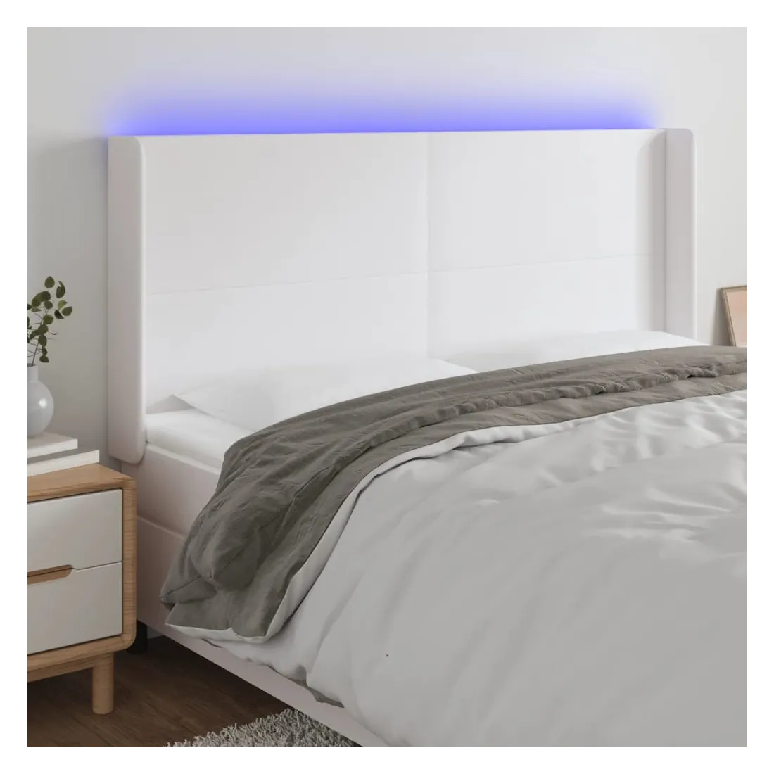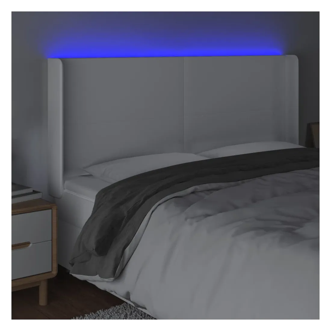 Cette tête de lit à LED classique, au design élégant, donne à votre cadre de lit une touche de modernité étonnante et convient parfaitement à toute chambre à coucher. Similicuir durable : le similicuir de qualité supérieure est un matériau très durable. Il est résistant aux taches, ce qui le rend facile à nettoyer avec un chiffon humide. La surface lisse donne également un aspect luxueux et la beauté du cuir véritable.LED colorée : apportez de l'éclairage dans l'obscurité avec des lumières LED colorées !Hauteur réglable : la tête de lit est réglable en hauteur selon vos préférences.Excellent soutien : la tête de lit vous offre un excellent soutien du dos lorsque vous êtes assis dans votre lit pour lire ou regarder la télévision.Bande à LED découpable : cette bande à LED flexible peut être ajustée en longueur. Le symbole des ciseaux indique où la bande peut être coupée en toute sécurité sans l'endommager. Remarque :Seule la partie avec un symbole de ciseaux peut être coupée et seule la partie avec l'USB continuera à fonctionner comme avant.Chaque produit est livré avec un manuel de montage dans la boîte pour un montage facile.Ce produit est doté d'un connecteur USB, mais la source d'alimentation certifiée de USB 5V n'est pas incluse.