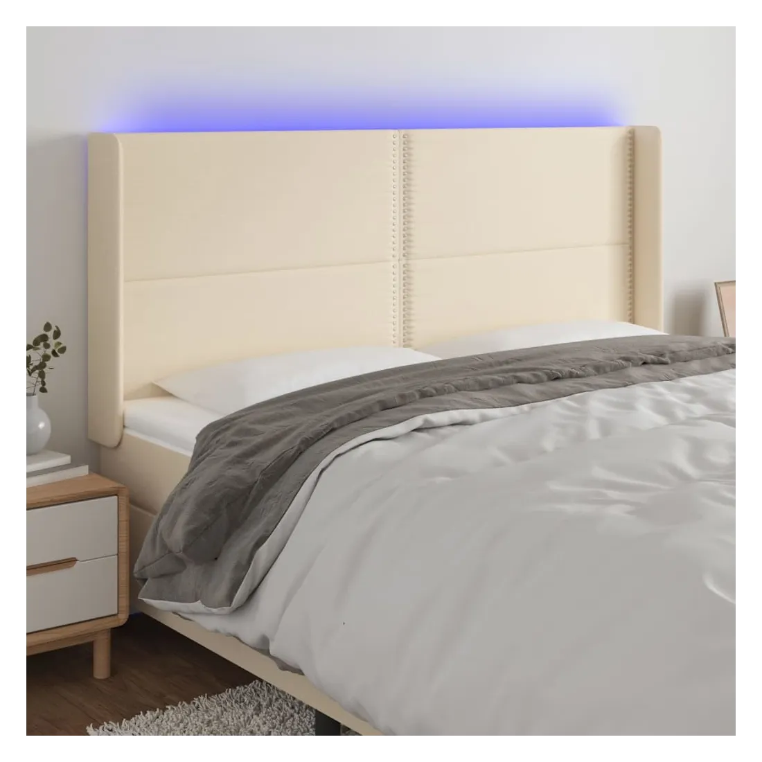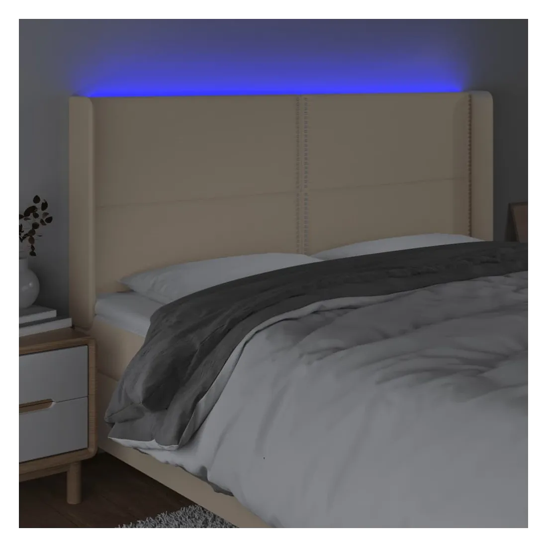 vidaXLCette tête de lit à LED classique, au design élégant, donne à votre cadre de lit une touche de modernité étonnante et convient parfaitement à toute chambre à coucher. Tissu durable : le tissu présente un aspect simple et épuré, et il est respirant et durable.LED colorée : apportez de l'éclairage dans l'obscurité avec des lumières LED colorées !Hauteur réglable : la tête de lit est réglable en hauteur selon vos préférences.Excellent soutien : la tête de lit vous offre un excellent soutien du dos lorsque vous êtes assis dans votre lit pour lire ou regarder la télévision.Bande à LED découpable : cette bande à LED flexible peut être ajustée en longueur. Le symbole des ciseaux indique où la bande peut être coupée en toute sécurité sans l'endommager. Remarque :Seule la partie avec un symbole de ciseaux peut être coupée et seule la partie avec l'USB continuera à fonctionner comme avant.Chaque produit est livré avec un manuel de montage dans la boîte pour un montage facile.Ce produit est doté d'un connecteur USB, mais la source d'alimentation certifiée de USB 5V n'est pas incluse.