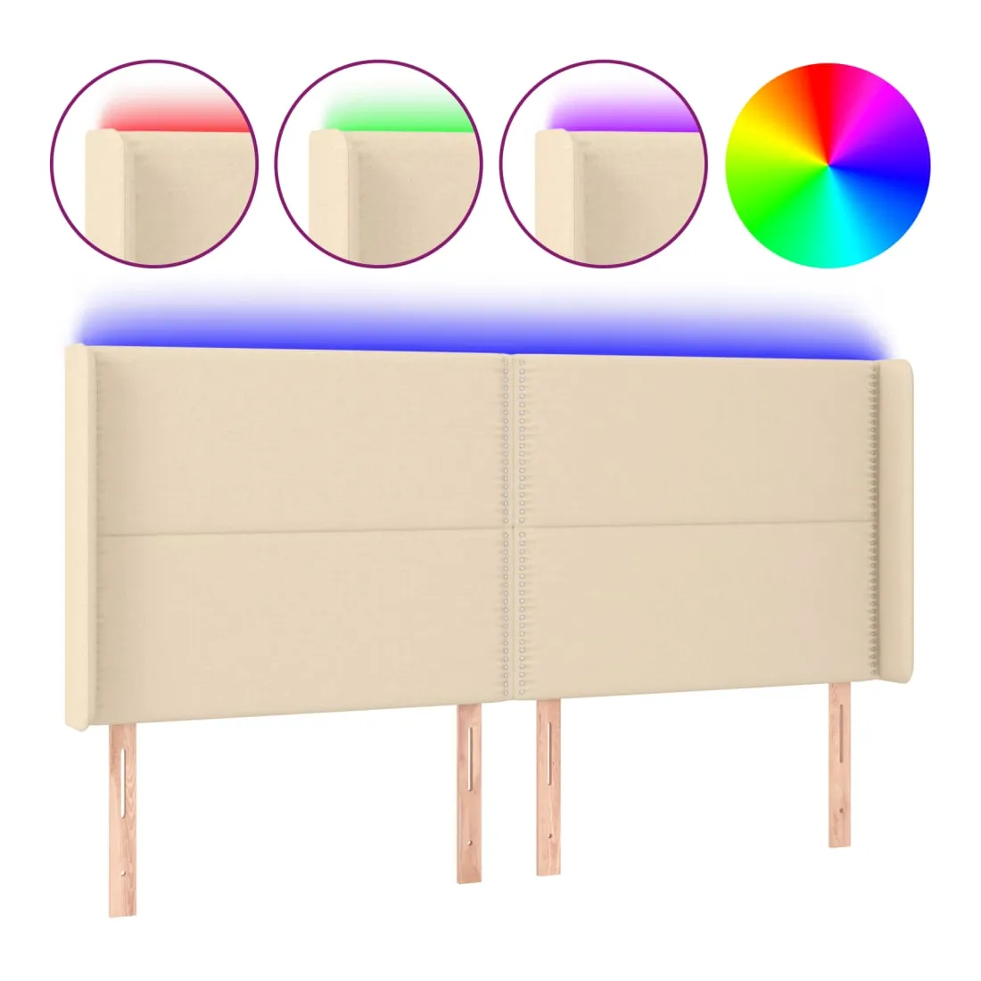 Tête de lit à LED Crème 183x16x118/128 cm Tissu