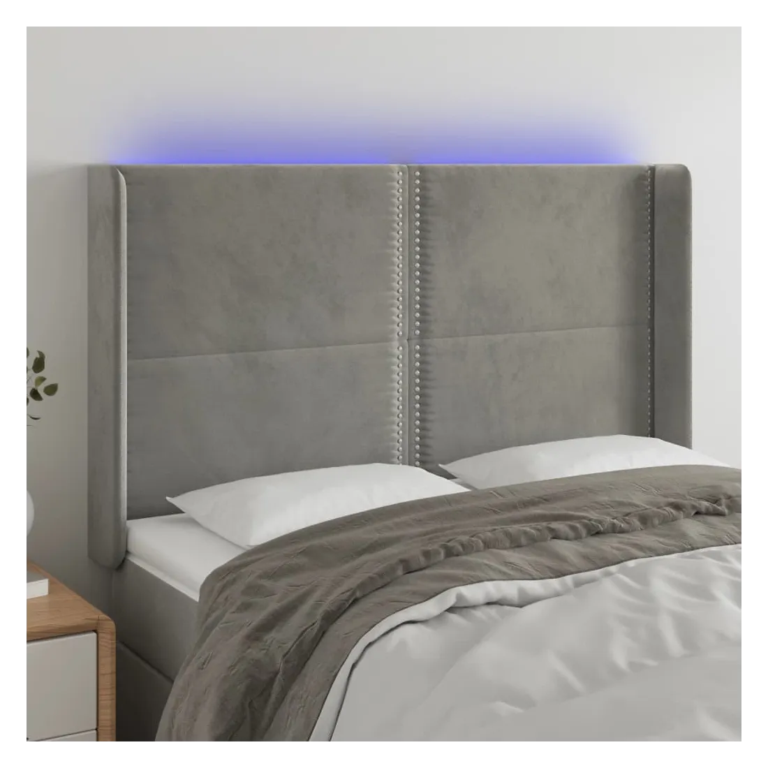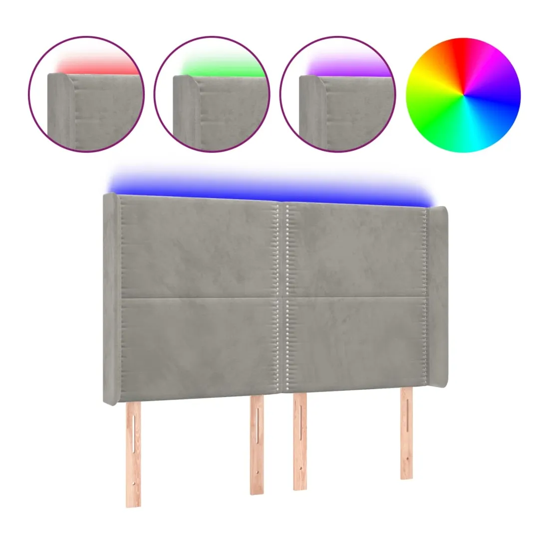 Tête de lit à LED Gris clair 147x16x118/128 cm Velours