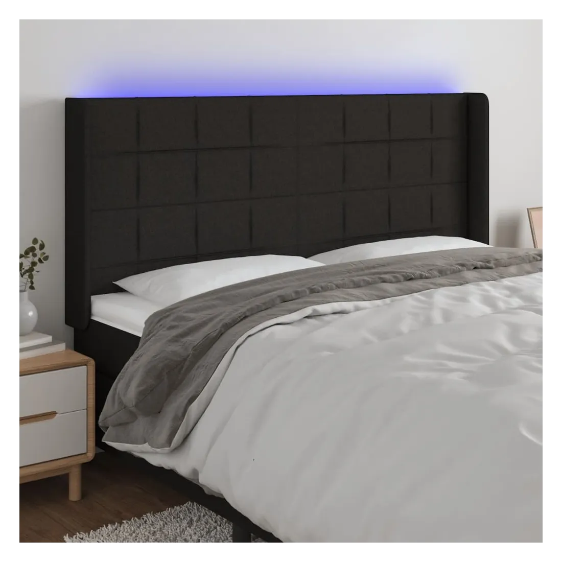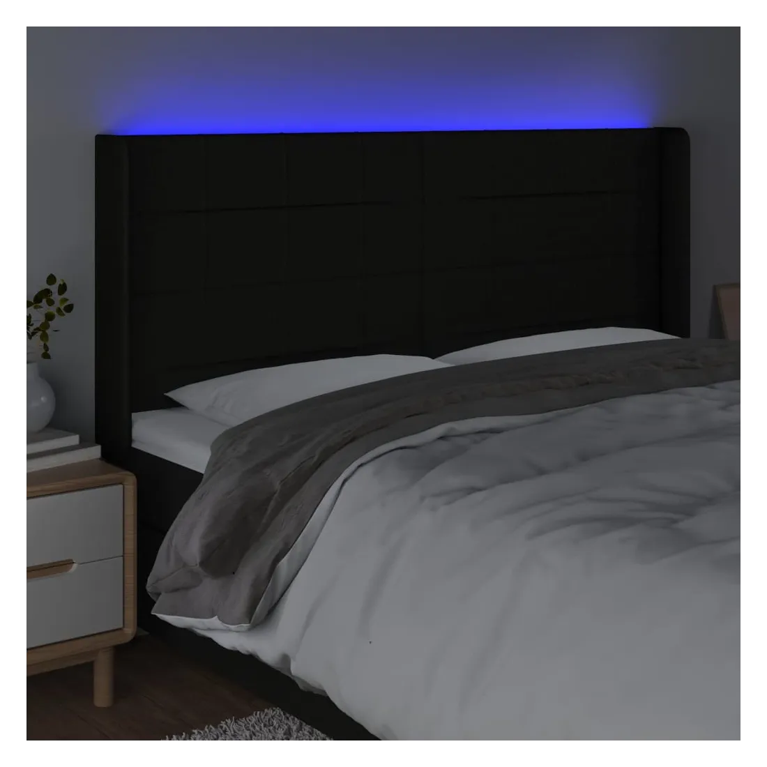 Cette tête de lit à LED classique, au design élégant, donne à votre cadre de lit une touche de modernité étonnante et convient parfaitement à toute chambre à coucher. Tissu durable : le tissu présente un aspect simple et épuré, et il est respirant et durable.LED colorée : apportez de l'éclairage dans l'obscurité avec des lumières LED colorées !Hauteur réglable : la tête de lit est réglable en hauteur selon vos préférences.Excellent soutien : la tête de lit vous offre un excellent soutien du dos lorsque vous êtes assis dans votre lit pour lire ou regarder la télévision.Bande à LED découpable : cette bande à LED flexible peut être ajustée en longueur. Le symbole des ciseaux indique où la bande peut être coupée en toute sécurité sans l'endommager. Remarque :Seule la partie avec un symbole de ciseaux peut être coupée et seule la partie avec l'USB continuera à fonctionner comme avant.Chaque produit est livré avec un manuel de montage dans la boîte pour un montage facile.Ce produit est doté d'un connecteur USB, mais la source d'alimentation certifiée de USB 5V n'est pas incluse.