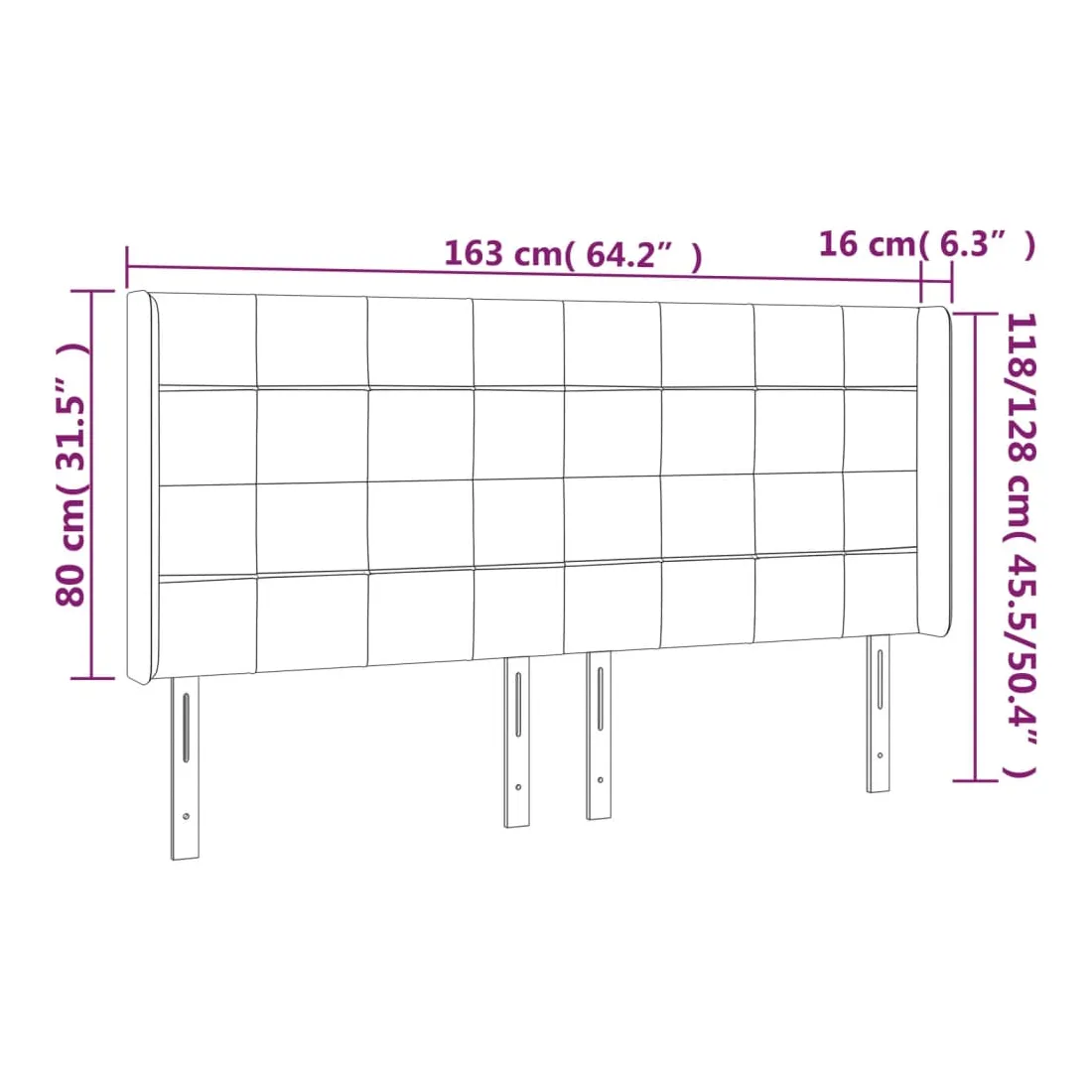 - 163 x 16 x 118/128 cm
