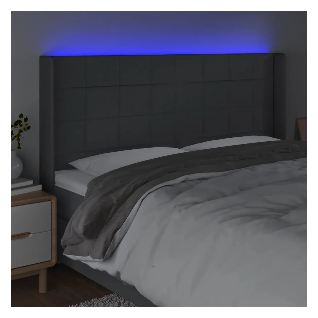 Tête de lit à LED Gris foncé 203x16x118/128 cm Tissu