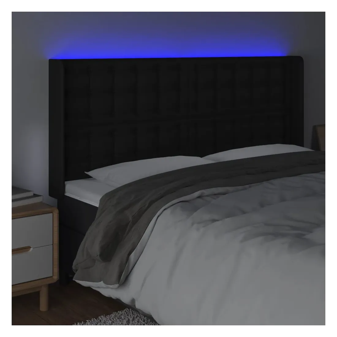 Cette tête de lit à LED classique, au design élégant, donne à votre cadre de lit une touche de modernité étonnante et convient parfaitement à toute chambre à coucher. Similicuir durable : le similicuir de qualité supérieure est un matériau très durable. Il est résistant aux taches, ce qui le rend facile à nettoyer avec un chiffon humide. La surface lisse donne également un aspect luxueux et la beauté du cuir véritable.LED colorée : apportez de l'éclairage dans l'obscurité avec des lumières LED colorées !Hauteur réglable : la tête de lit est réglable en hauteur selon vos préférences.Excellent soutien : la tête de lit vous offre un excellent soutien du dos lorsque vous êtes assis dans votre lit pour lire ou regarder la télévision.Bande à LED découpable : cette bande à LED flexible peut être ajustée en longueur. Le symbole des ciseaux indique où la bande peut être coupée en toute sécurité sans l'endommager. Remarque :Seule la partie avec un symbole de ciseaux peut être coupée et seule la partie avec l'USB continuera à fonctionner comme avant.Chaque produit est livré avec un manuel de montage dans la boîte pour un montage facile.Ce produit est doté d'un connecteur USB, mais la source d'alimentation certifiée de USB 5V n'est pas incluse.