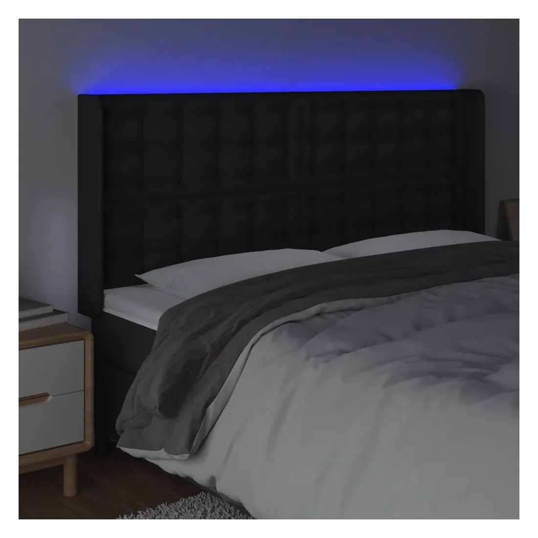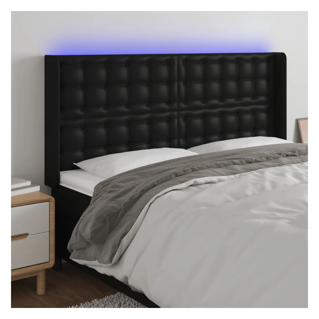 Cette tête de lit à LED classique, au design élégant, donne à votre cadre de lit une touche de modernité étonnante et convient parfaitement à toute chambre à coucher. Similicuir durable : le similicuir de qualité supérieure est un matériau très durable. Il est résistant aux taches, ce qui le rend facile à nettoyer avec un chiffon humide. La surface lisse donne également un aspect luxueux et la beauté du cuir véritable.LED colorée : apportez de l'éclairage dans l'obscurité avec des lumières LED colorées !Hauteur réglable : la tête de lit est réglable en hauteur selon vos préférences.Excellent soutien : la tête de lit vous offre un excellent soutien du dos lorsque vous êtes assis dans votre lit pour lire ou regarder la télévision.Bande à LED découpable : cette bande à LED flexible peut être ajustée en longueur. Le symbole des ciseaux indique où la bande peut être coupée en toute sécurité sans l'endommager. Remarque :Seule la partie avec un symbole de ciseaux peut être coupée et seule la partie avec l'USB continuera à fonctionner comme avant.Chaque produit est livré avec un manuel de montage dans la boîte pour un montage facile.Ce produit est doté d'un connecteur USB, mais la source d'alimentation certifiée de USB 5V n'est pas incluse.